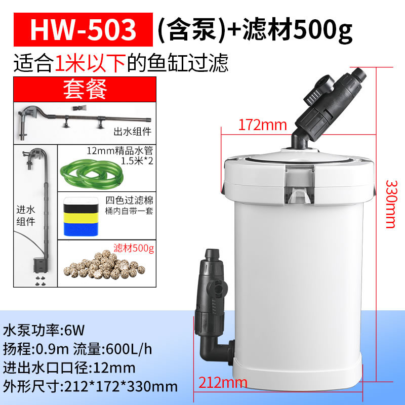 • HW-503(워터펌프 6W)은 1m 이하 수조의 여과에 적합합니다.