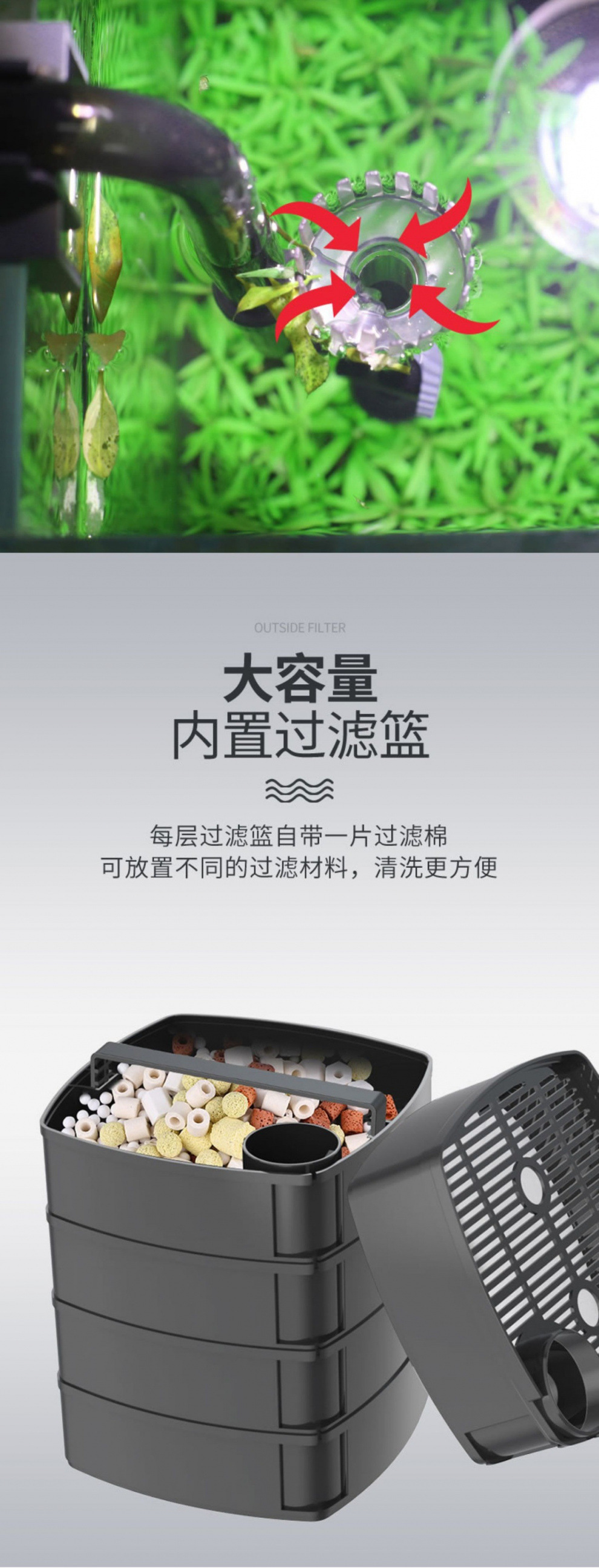 수조 필터, 잔디 수조 외부 필터 배럴, 무음 필터, 정수 순환, 3-in-1 시스템 필터 펌프