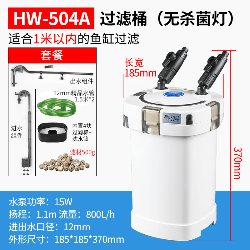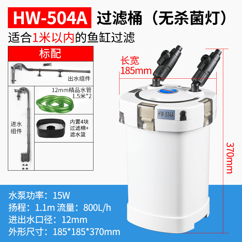 • HW-504A(워터펌프 15W)는 1m 이하 수조의 여과에 적합합니다.