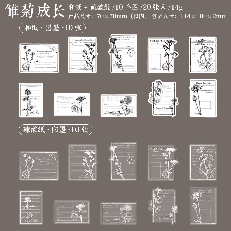 정원 관찰 일기 시리즈 아름다운 하루 스티커 흑백 잉크 식물 수첩 장식 8가지 스타일 20개스토어 가기
