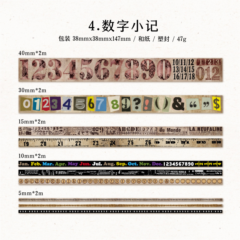 Yanji 복고풍 회고록 시리즈 Washi 테이프 복고풍 창의적 디지털 눈금자 장식 사진 핸드북 콜라주스토어 가기