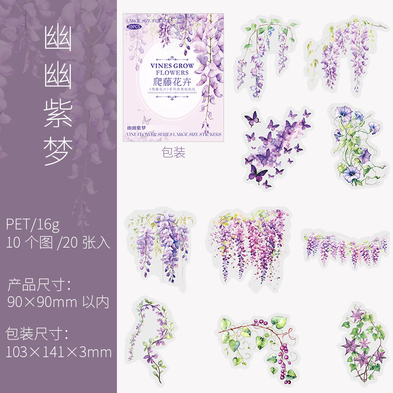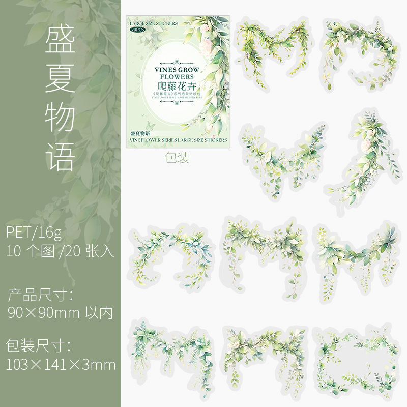 덩굴 꽃 시리즈 20 토마토 소스 소녀 조경 스티커 팩 녹색 식물 테마 소재 장식 6 스타일
