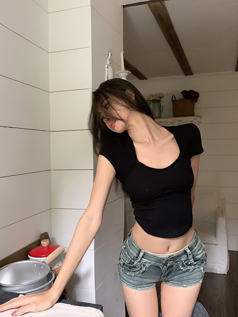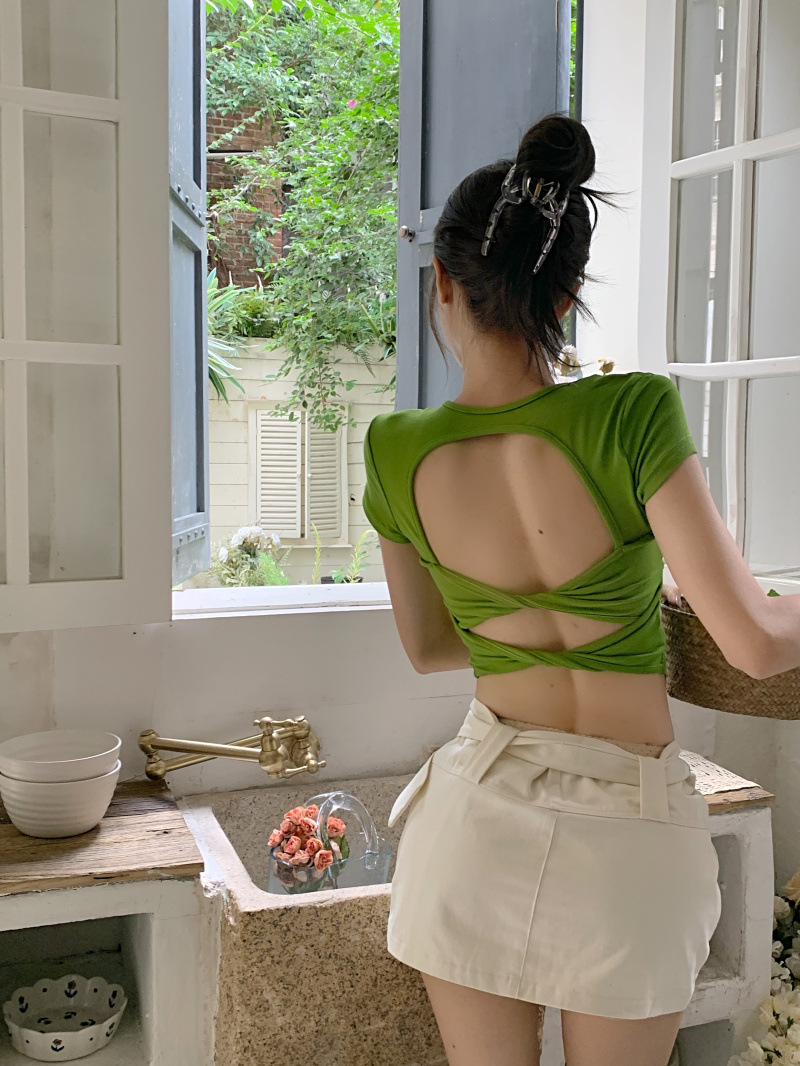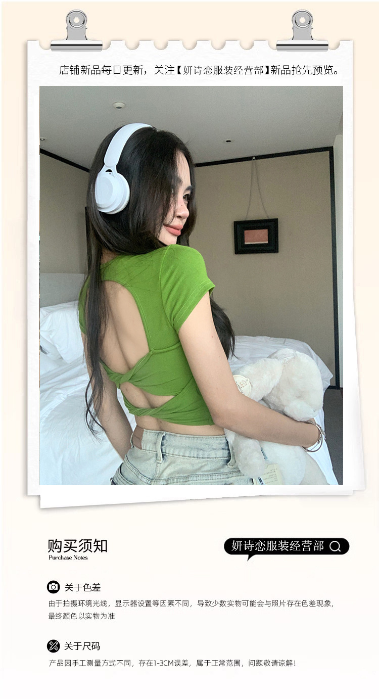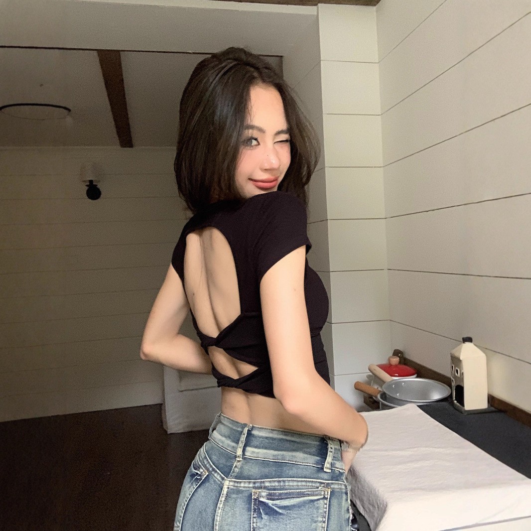 Hot Girl Pure Lust 스타일 백리스 오른쪽 어깨 반팔 티셔츠 여성용 여름 2025 새로운 스타일 슬리밍 탑 가슴 패드 포함스토어 가기