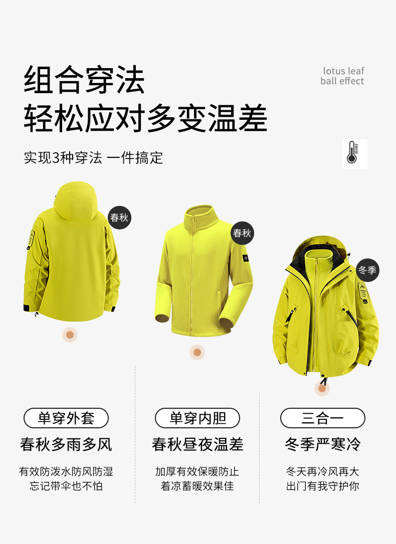 탈부착 가능한 여성용 가을 겨울 재킷 2025 새로운 3-in-one 작업 재킷 방풍 플러스 벨벳 소형 등산 재킷스토어 가기