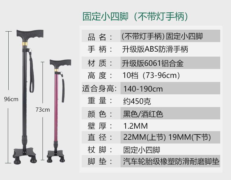 노인용 빛이 있는 지팡이, 미끄럼 방지 지팡이, 접이식 4개의 다리, 노인용 지팡이, 4개의 모서리 지팡이, 보행 보조기
