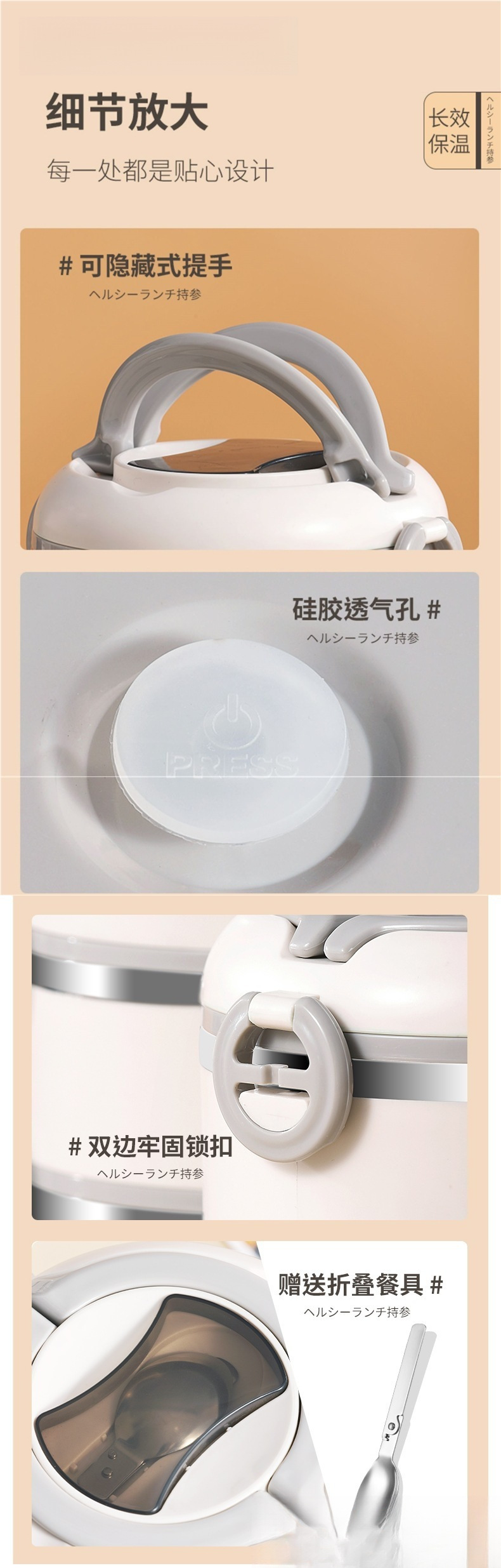 • ❃❁❃[펄화이트] 3단 2600ML 프리 접이식 스푼 + 스테인리스 젓가락과 스푼박스