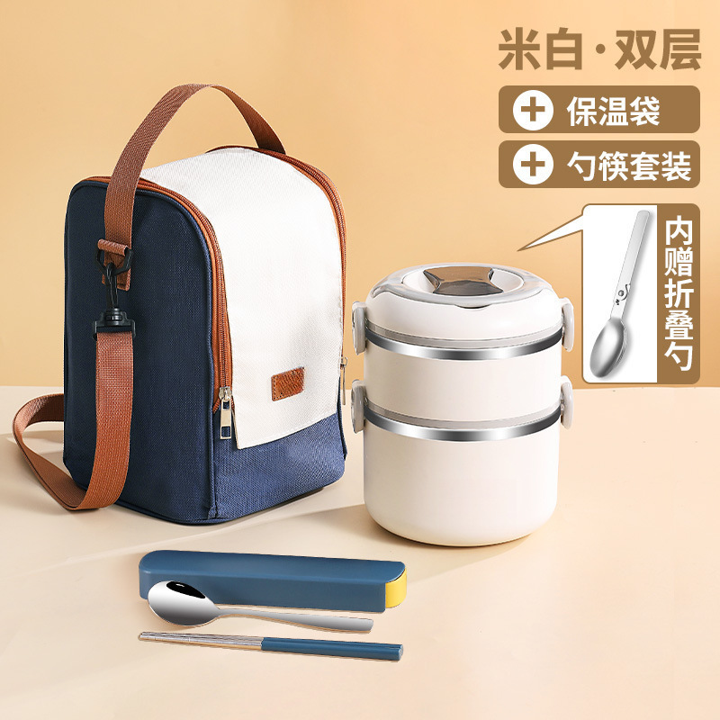 • ❃❁❃[펄화이트] 더블 레이어 1840ML - 무료 접이식 스푼 + 스테인리스 젓가락 스푼 + 다크블루 보온백