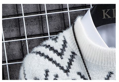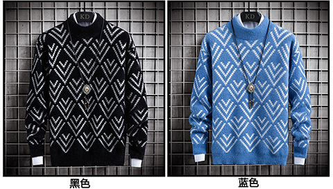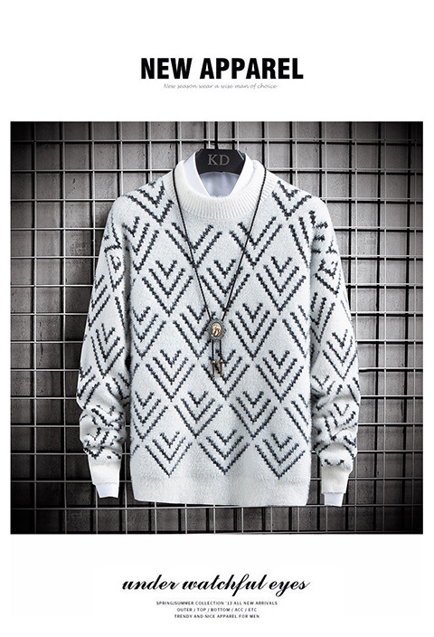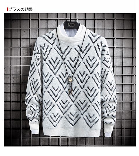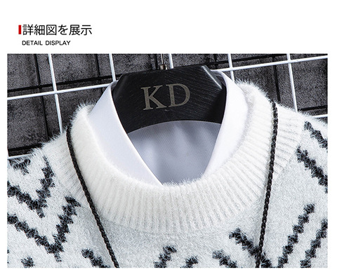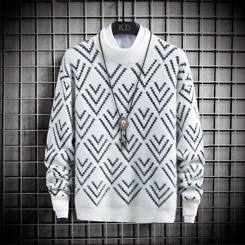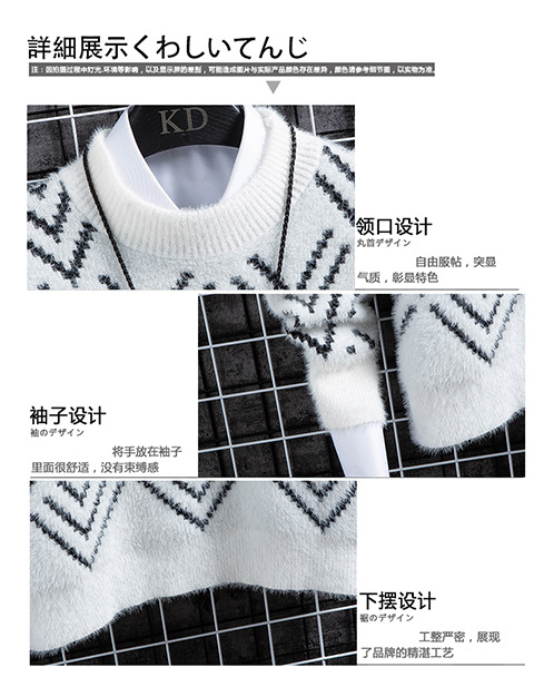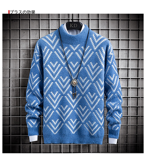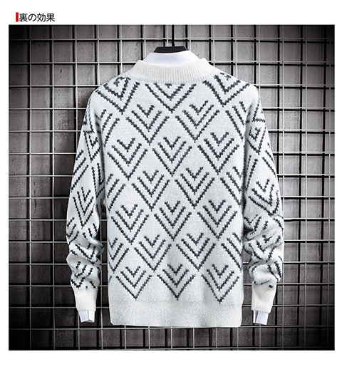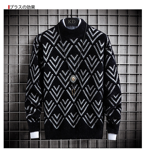 국경 간 2025 가을, 겨울 새로운 라운드 넥 스웨터 한국 스타일 패션 슬림 모조 밍크 벨벳 하프 터틀넥 니트 스웨터 남성용스토어 가기