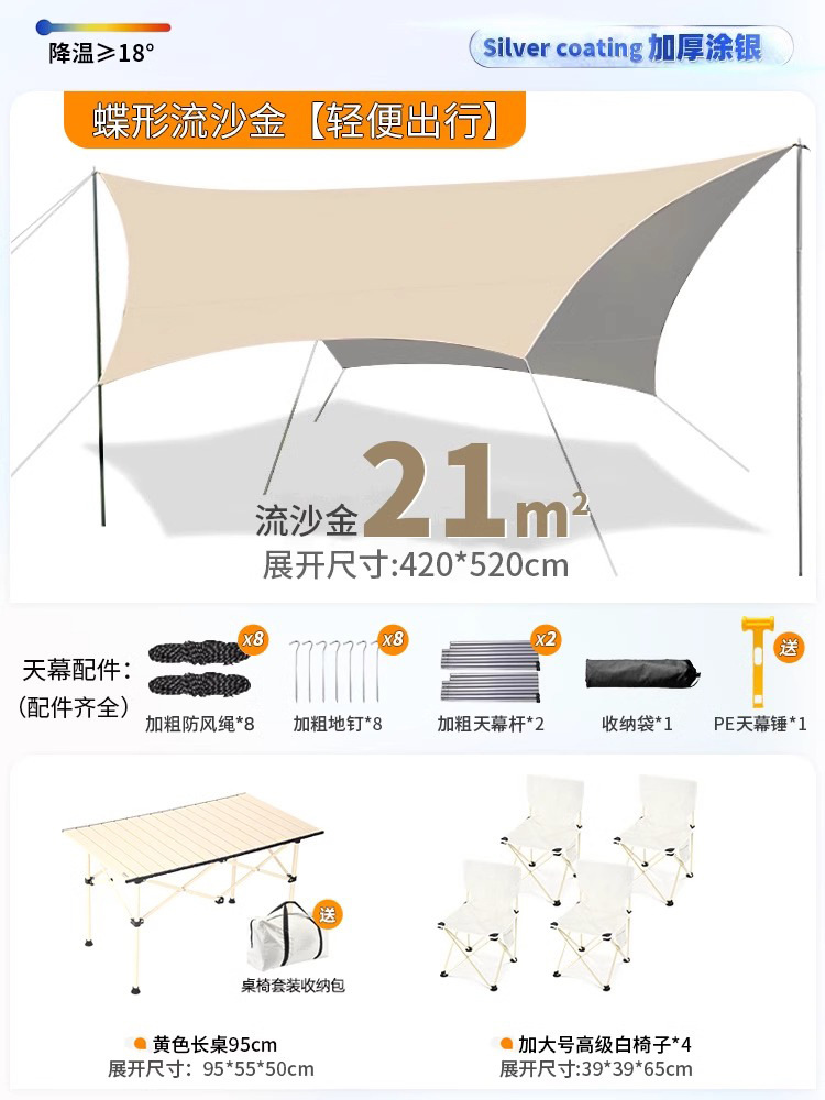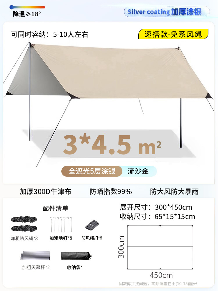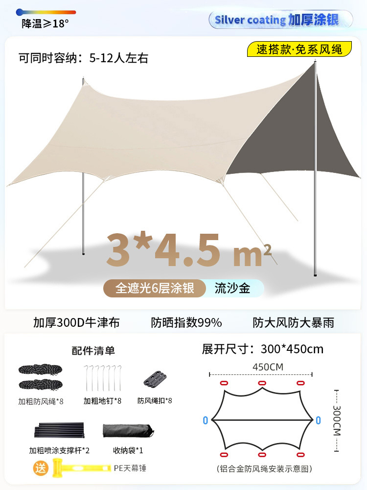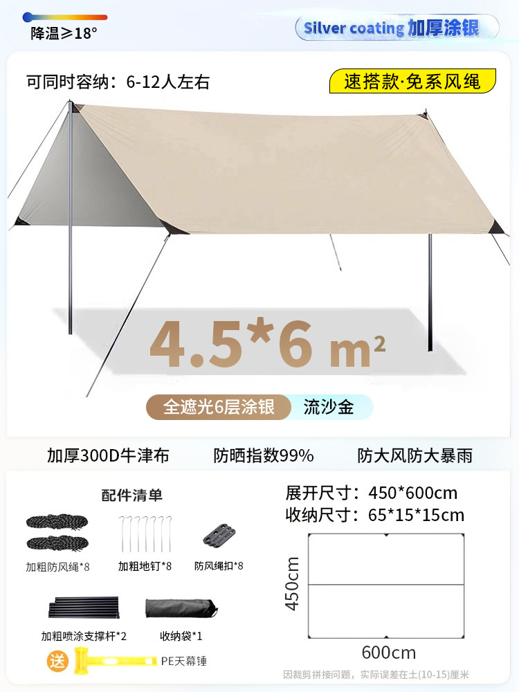 • 퀵핏 퀵샌드 골드 [4.5*4.5m] 자외선 차단 콜드 티타늄 실버 글루 - 7~16명에게 권장.