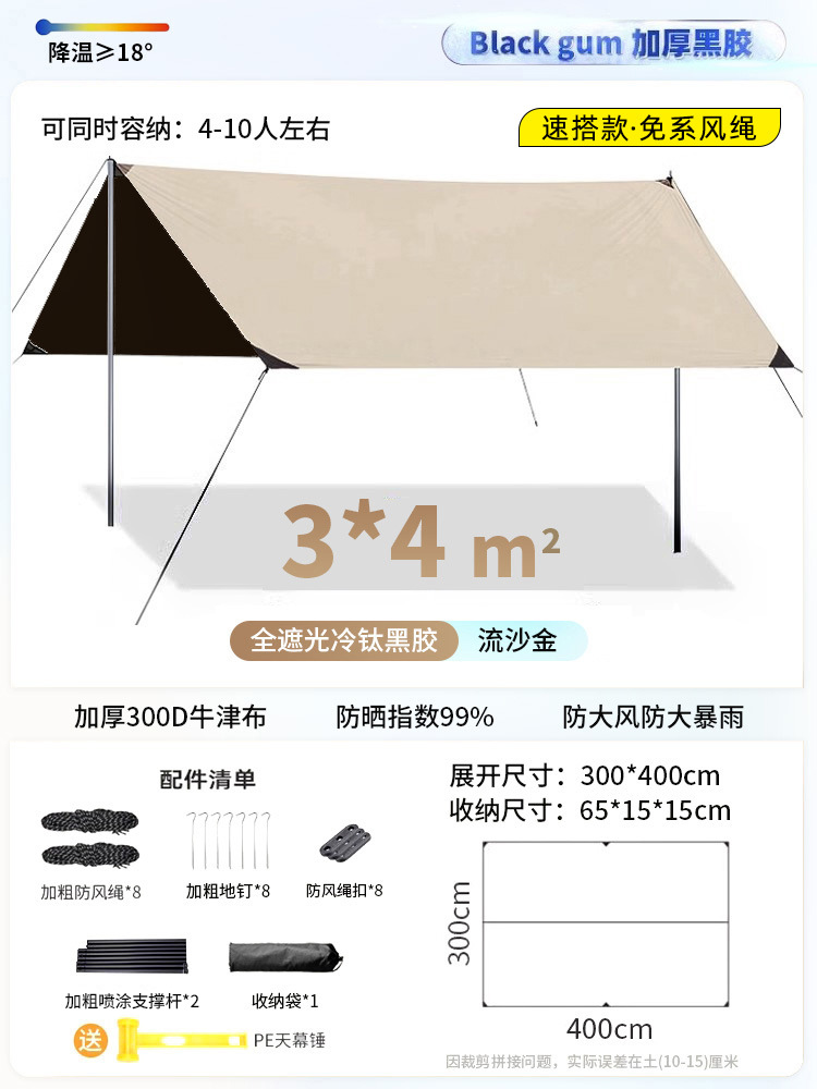 • 퀵핏 퀵샌드 골드 [3*4m] 완전 암막 콜드 티타늄 실버 글루 - 4~10인 권장