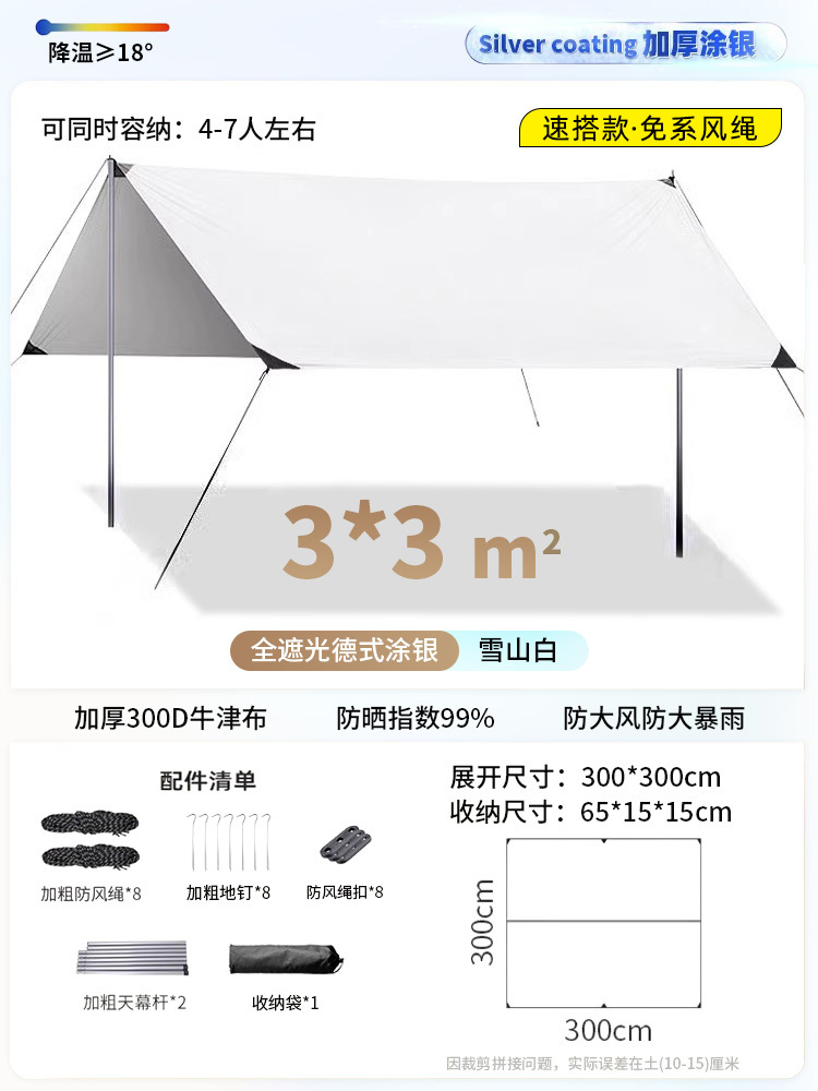 • 퀵핏 스노우 마운틴 화이트 [3*3m] 완전 암막 콜드 티타늄 실버 글루 - 4~7인 권장