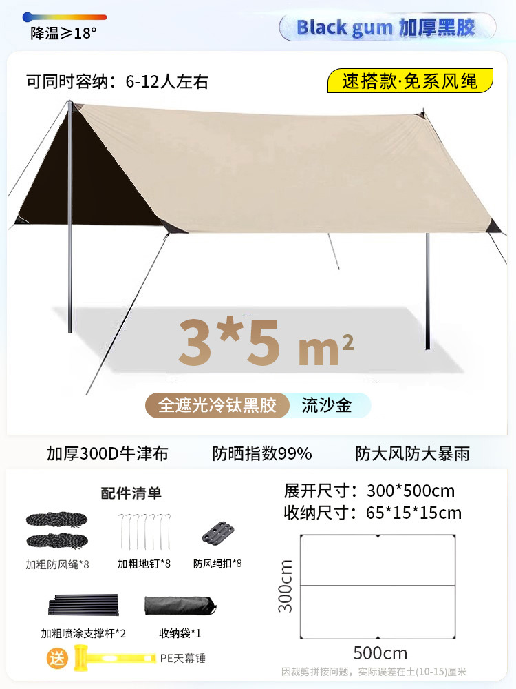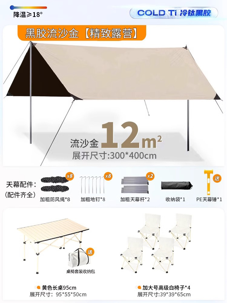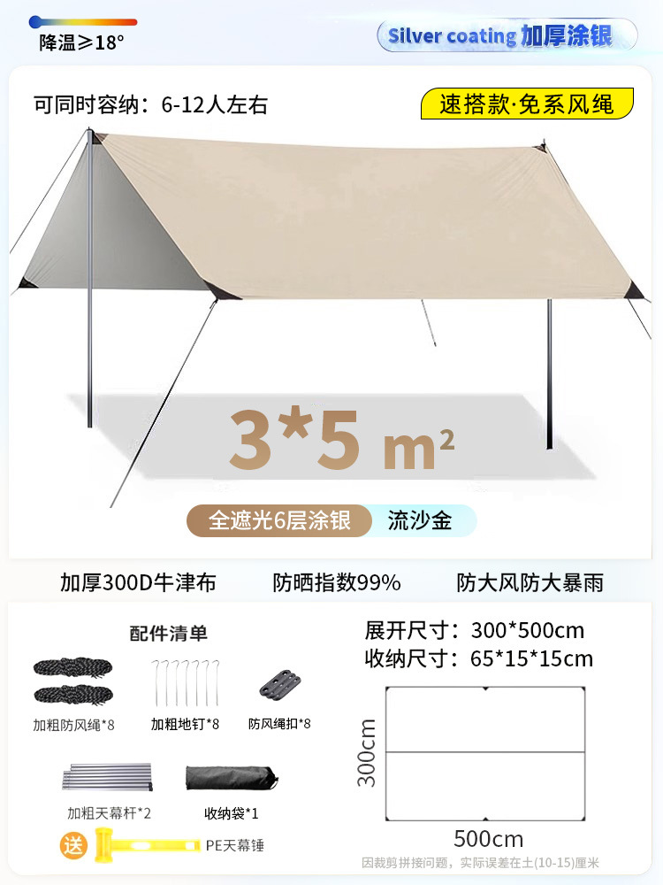 • 퀵샌드 골드 [3*4.5m] 자외선 차단 콜드 티타늄 실버 글루 - 5~12인 권장