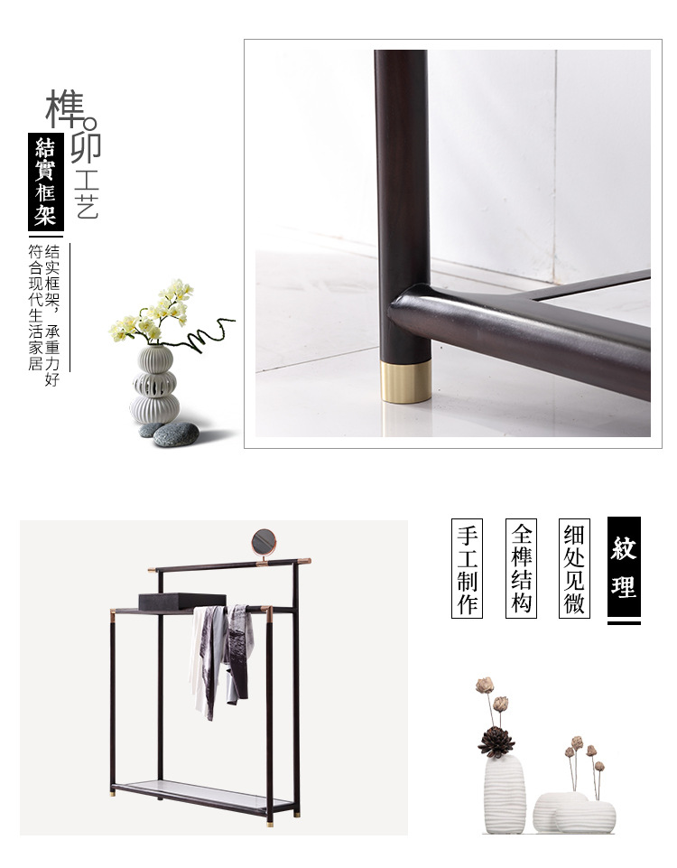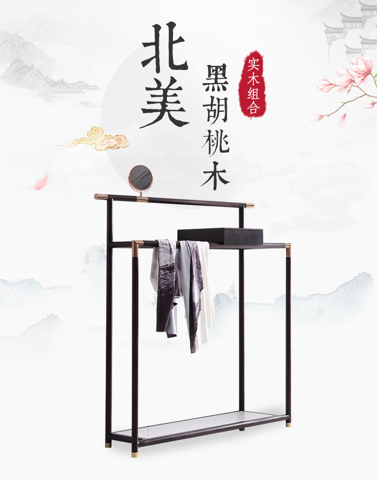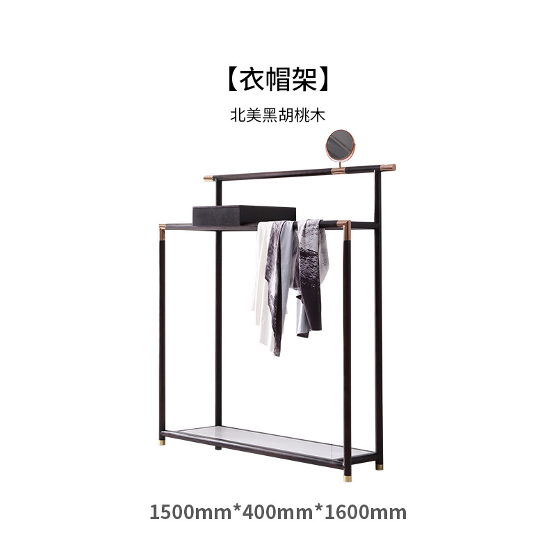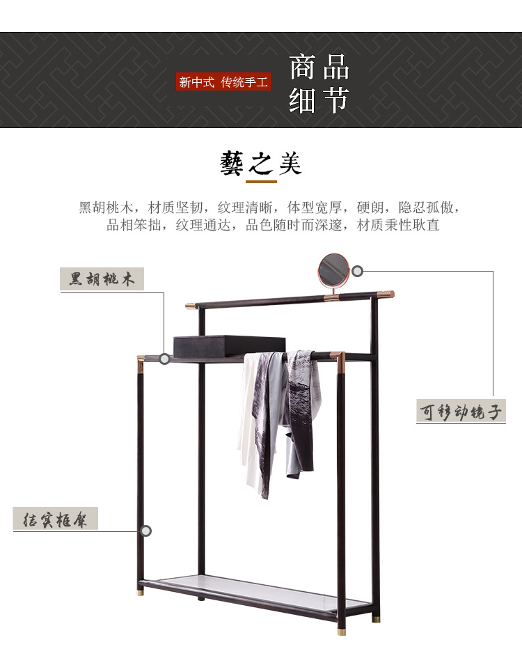 새로운 중국 스타일 코트 랙 블랙 호두 침실 가구 간단한 거실 바닥 옷걸이 나무 홈스토어 가기