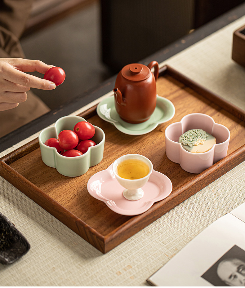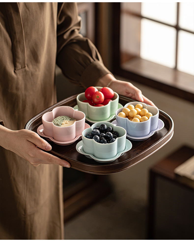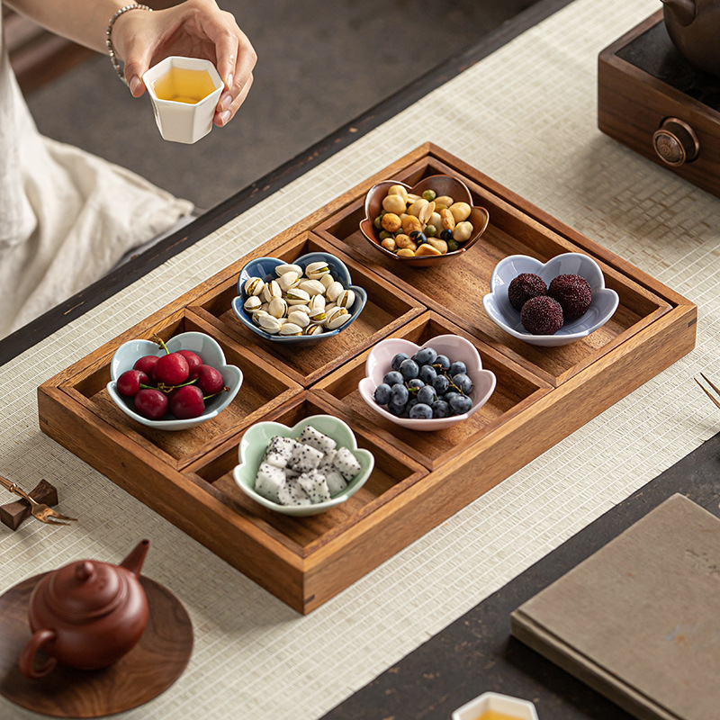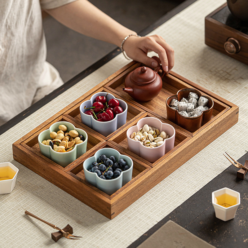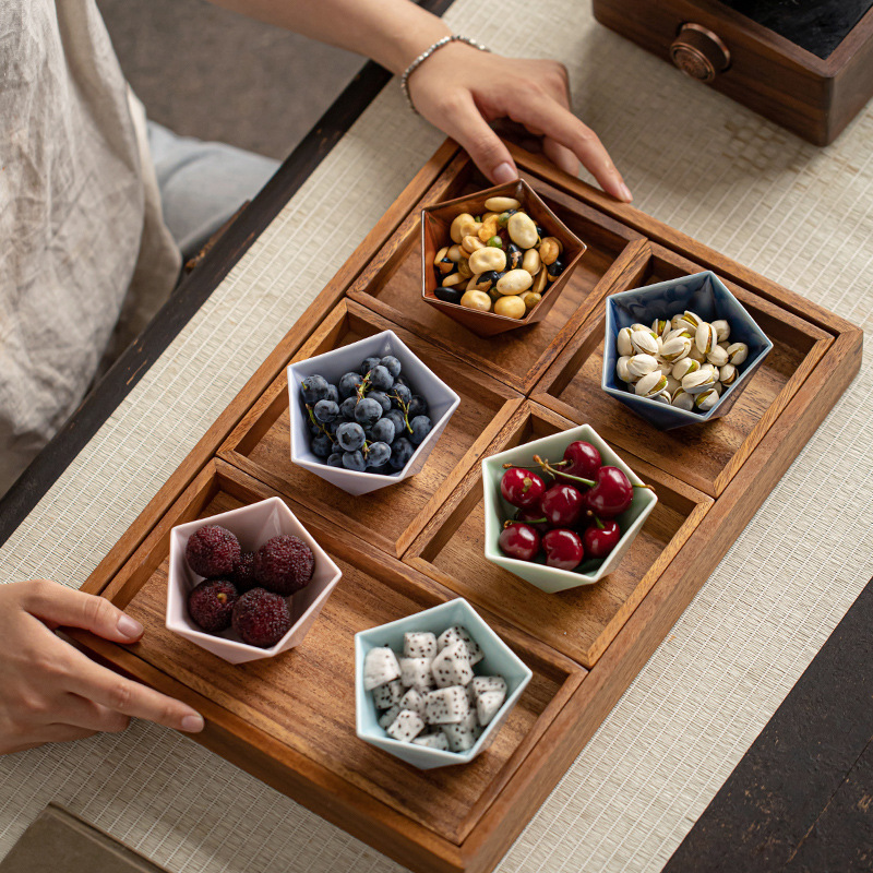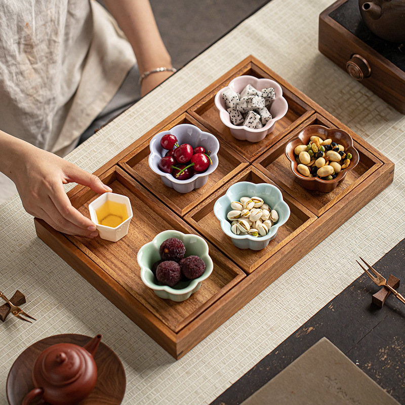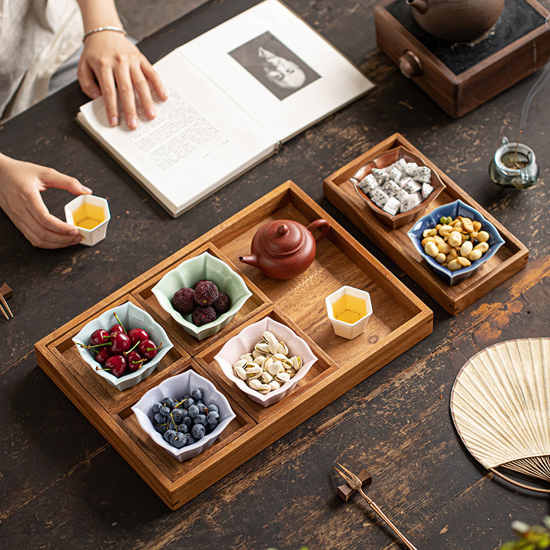 세라믹 작은 과일 접시, 차 접시, 중국 디저트 접시, 전골 접시, 말린 과일 스낵 접시, 대나무 트레이, 단단한 나무 접시