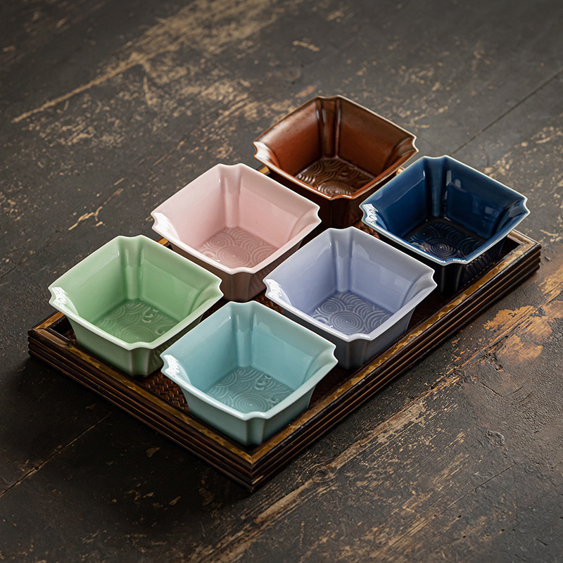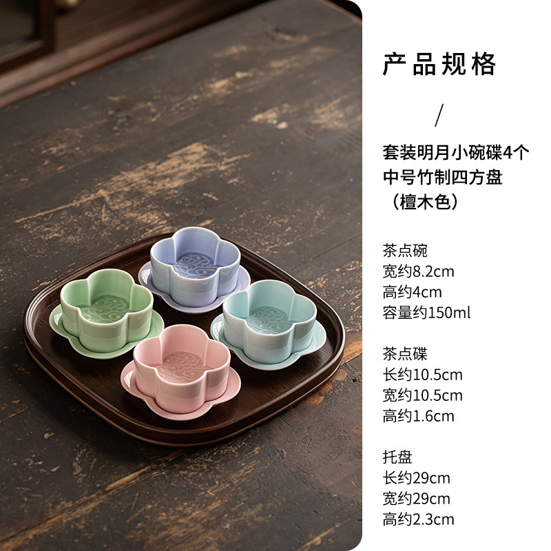 • 명월 작은 접시 4개 세트 + 중형 대나무 사각 접시(백단색)