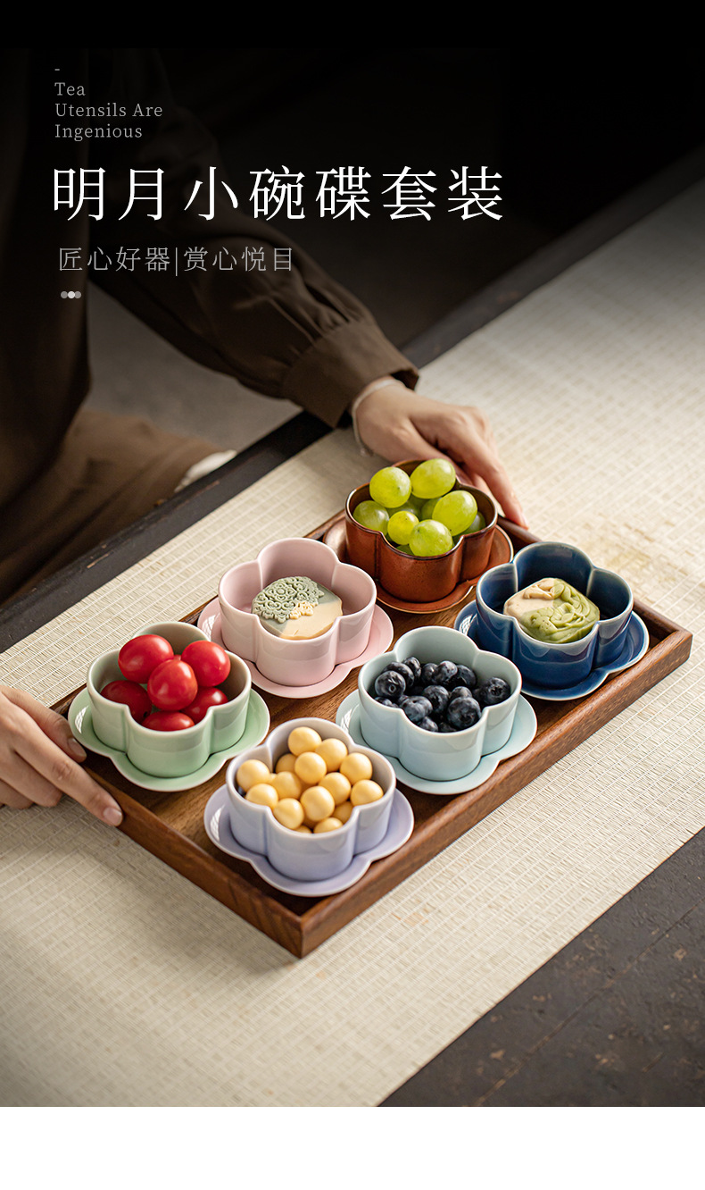 세라믹 작은 과일 접시, 차 접시, 중국 디저트 접시, 전골 접시, 말린 과일 스낵 접시, 대나무 트레이, 단단한 나무 접시스토어 가기
