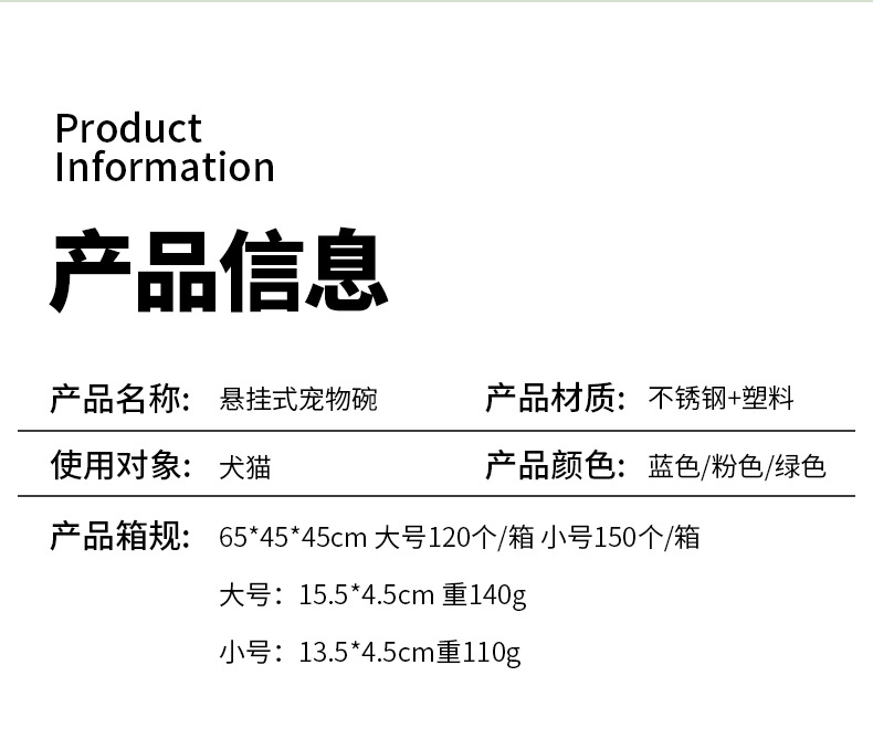 애완 동물 용품 고양이 그릇 고양이 먹이 그릇 흔들림 방지 교수형 개 그릇 캔디 컬러 애완 동물 그릇 스테인레스 스틸 그릇 도매