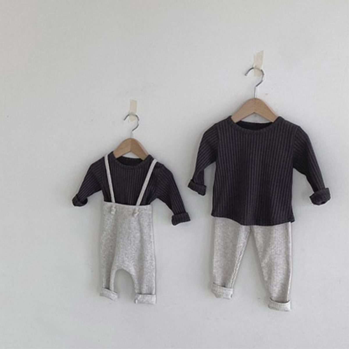 아동상의, 가을 스타일, 남아 및 여아용 라운드 넥, 심플한 대형 스트립 긴팔 티셔츠, 유아용 긴팔 하의 셔츠, 봄, 가을 스타일스토어 가기