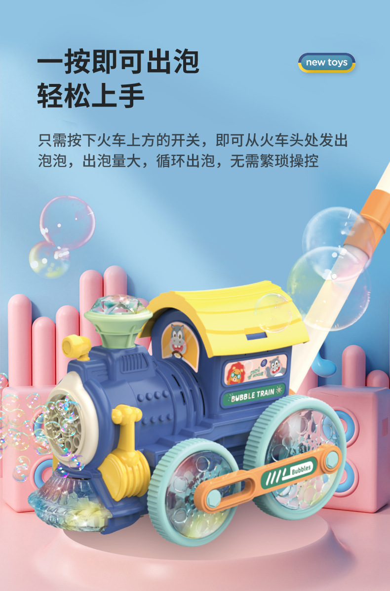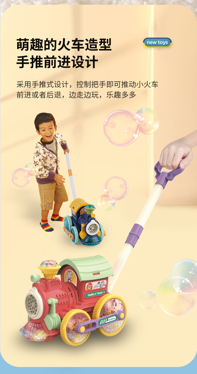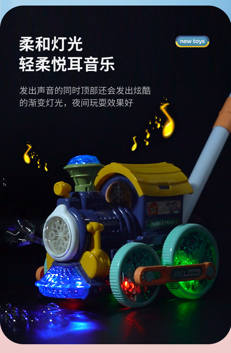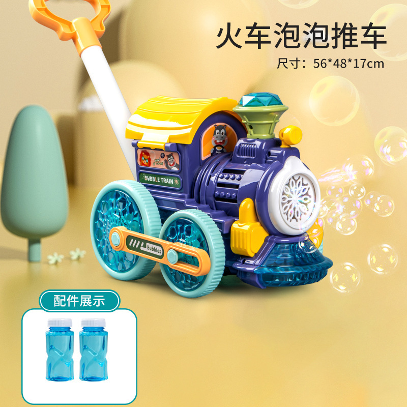 어린이를 위한 손으로 밀어주는 소형 기차 버블 머신, 전자동 버블 머신, 야외 보행기, 소리와 빛 버블 머신 스톨스토어 가기