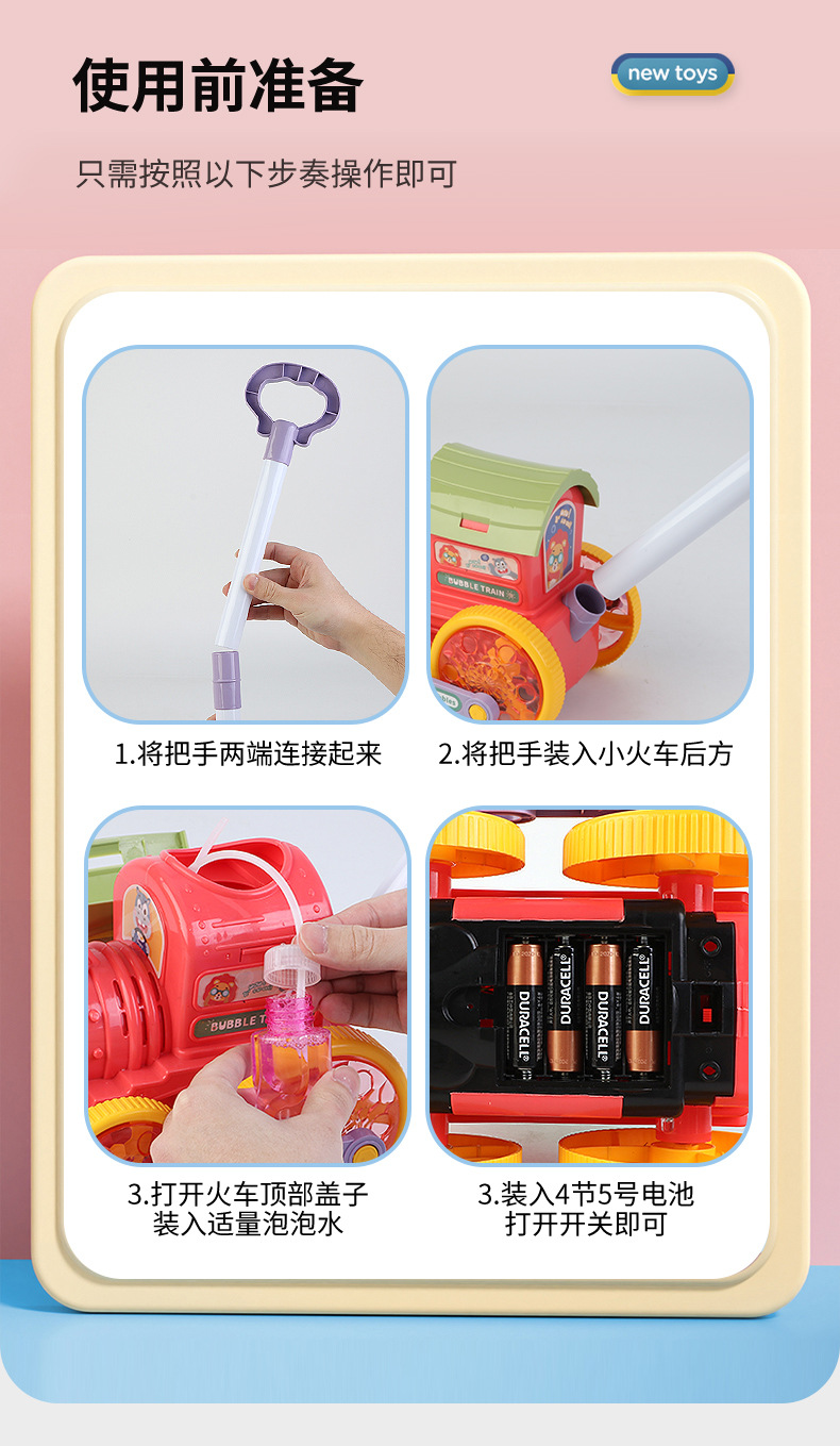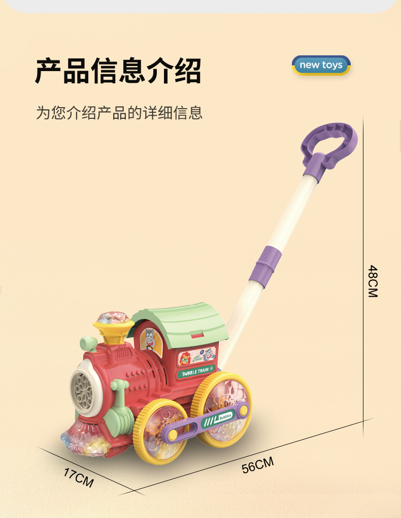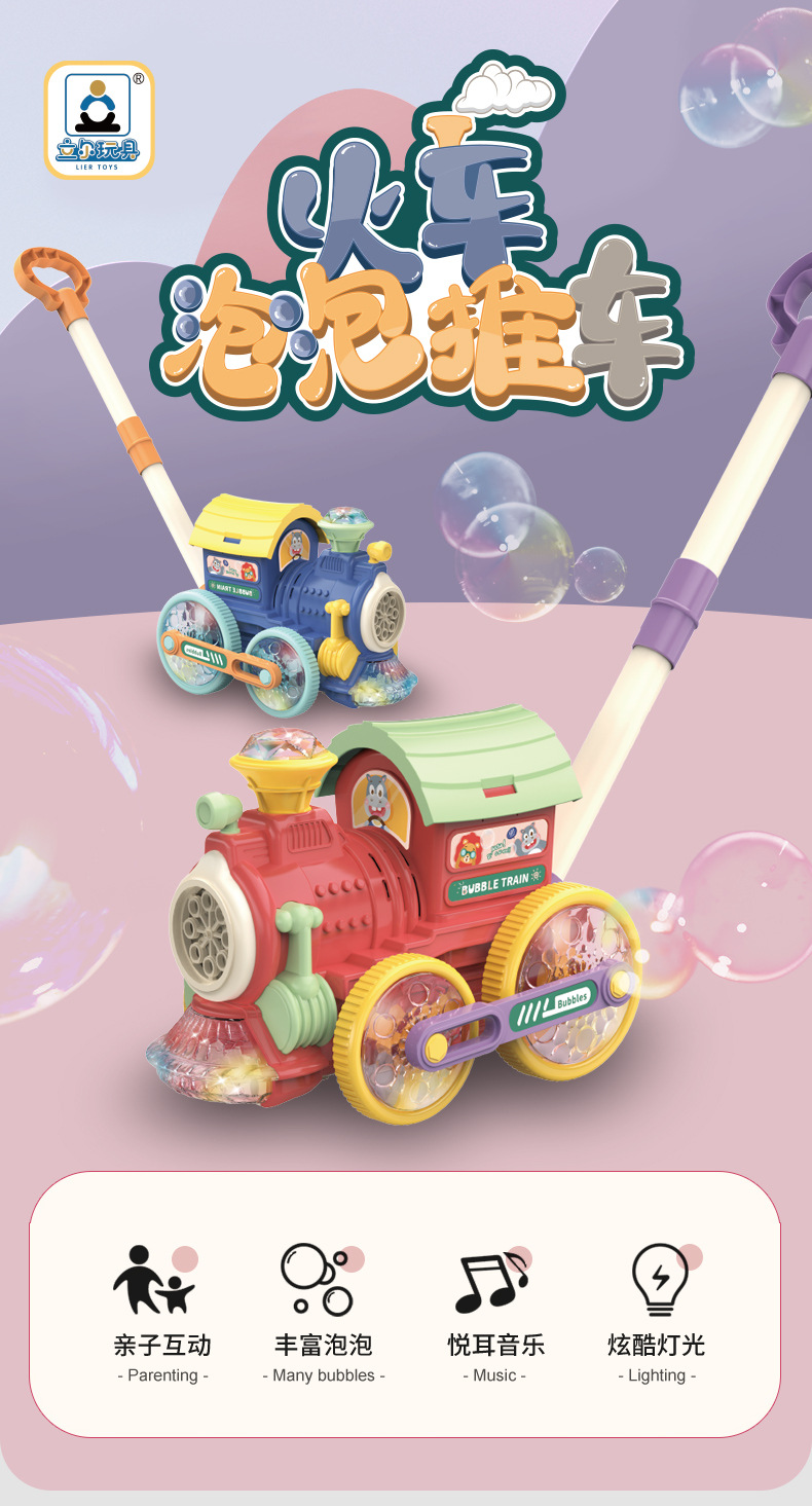 어린이를 위한 손으로 밀어주는 소형 기차 버블 머신, 전자동 버블 머신, 야외 보행기, 소리와 빛 버블 머신 스톨스토어 가기