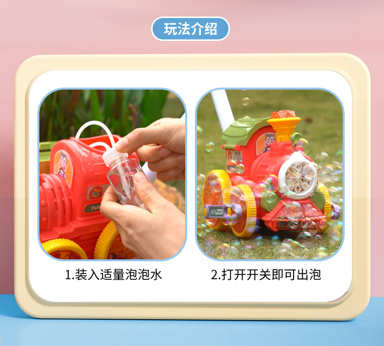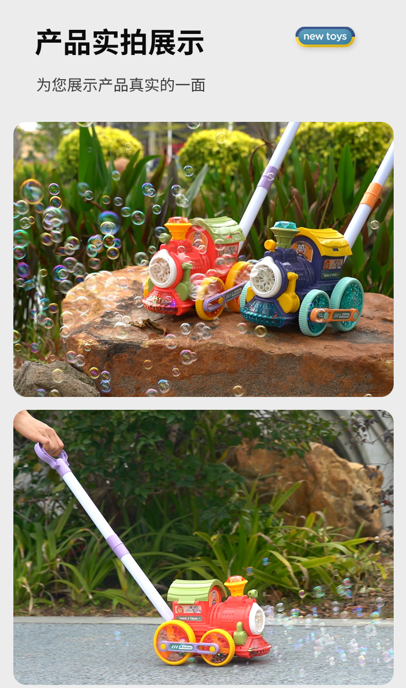 어린이를 위한 손으로 밀어주는 소형 기차 버블 머신, 전자동 버블 머신, 야외 보행기, 소리와 빛 버블 머신 스톨