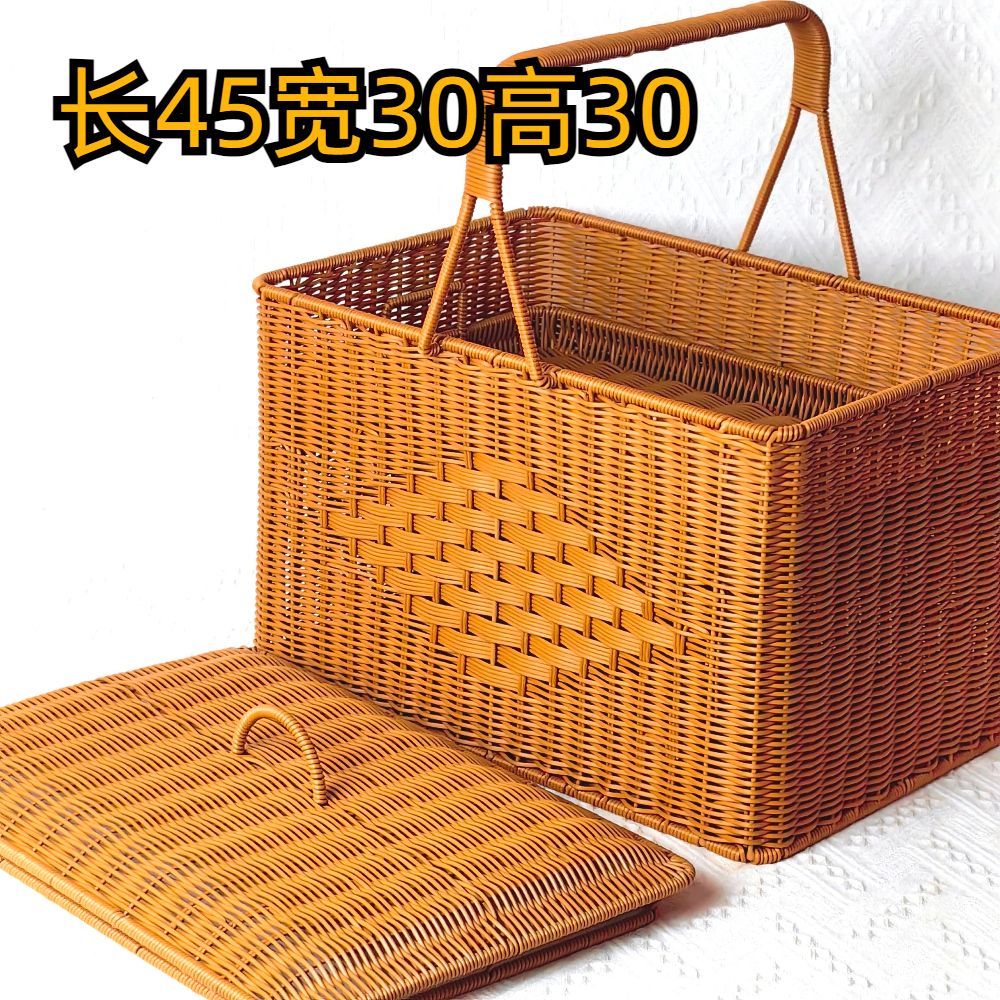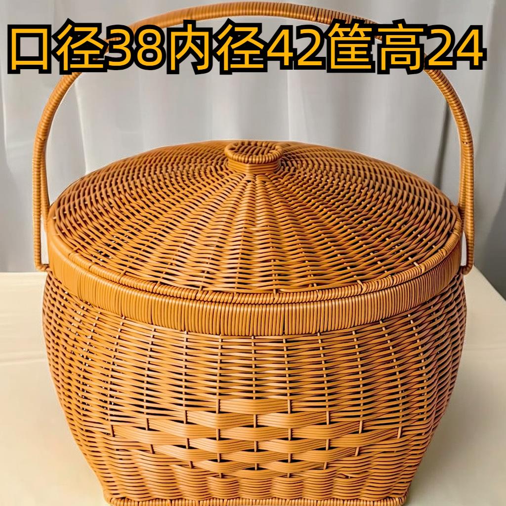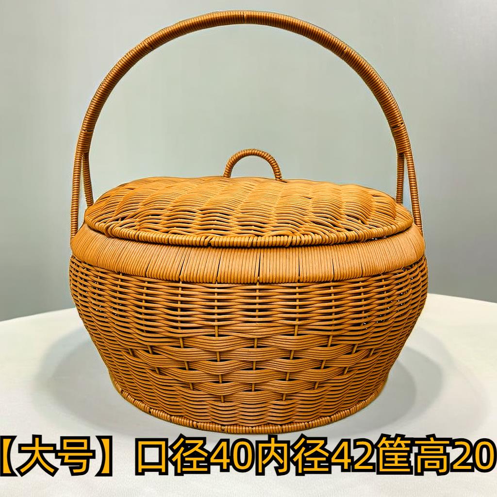 뚜껑이 있는 농촌 대나무 바구니, 뚜껑이 있는 바구니, 손으로 짠 용량 수납 바구니, 모조 등나무 야외