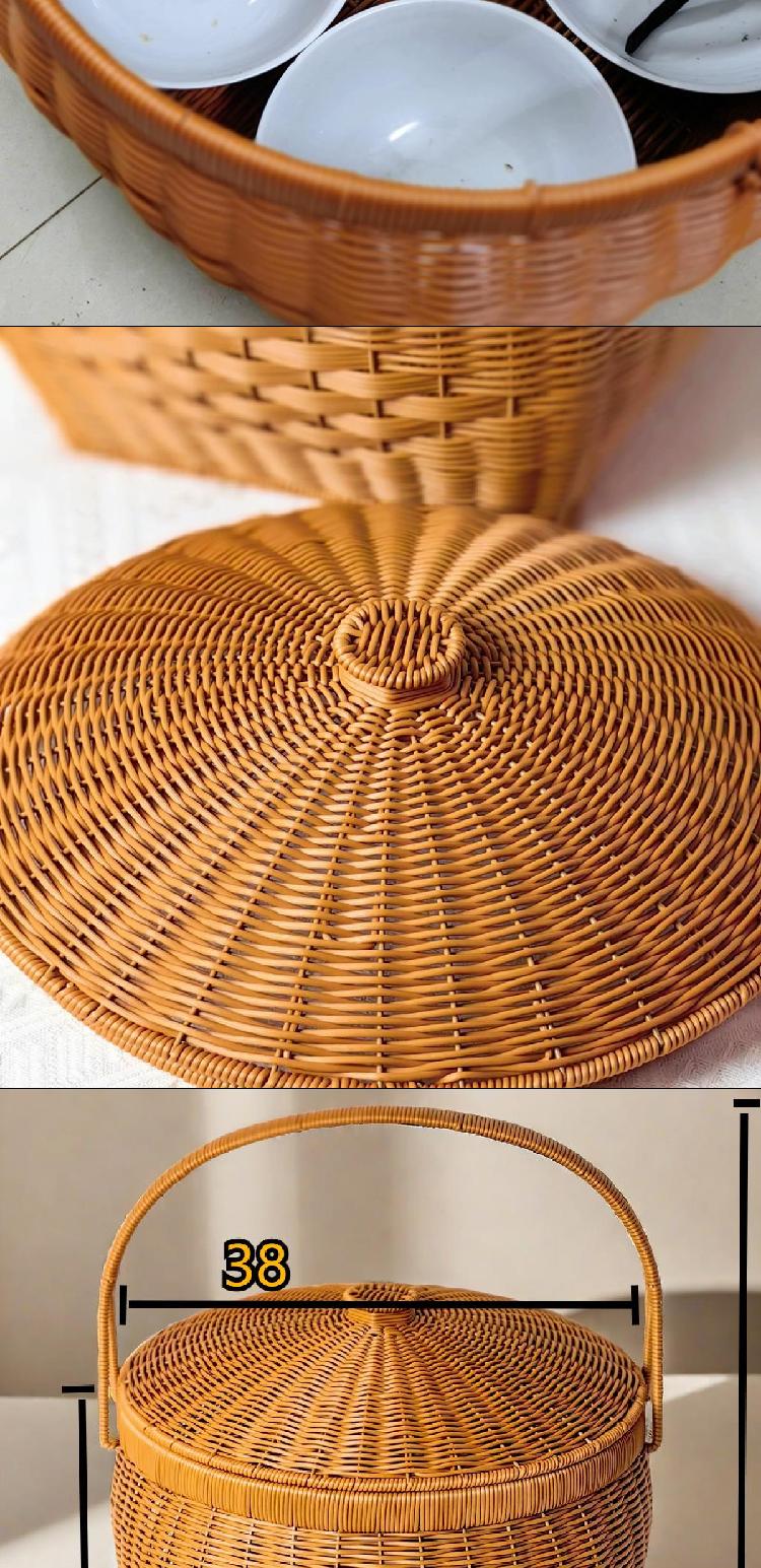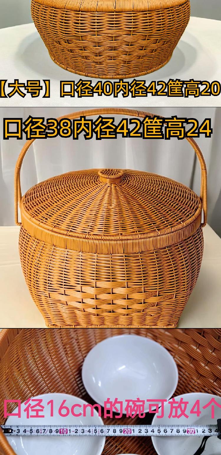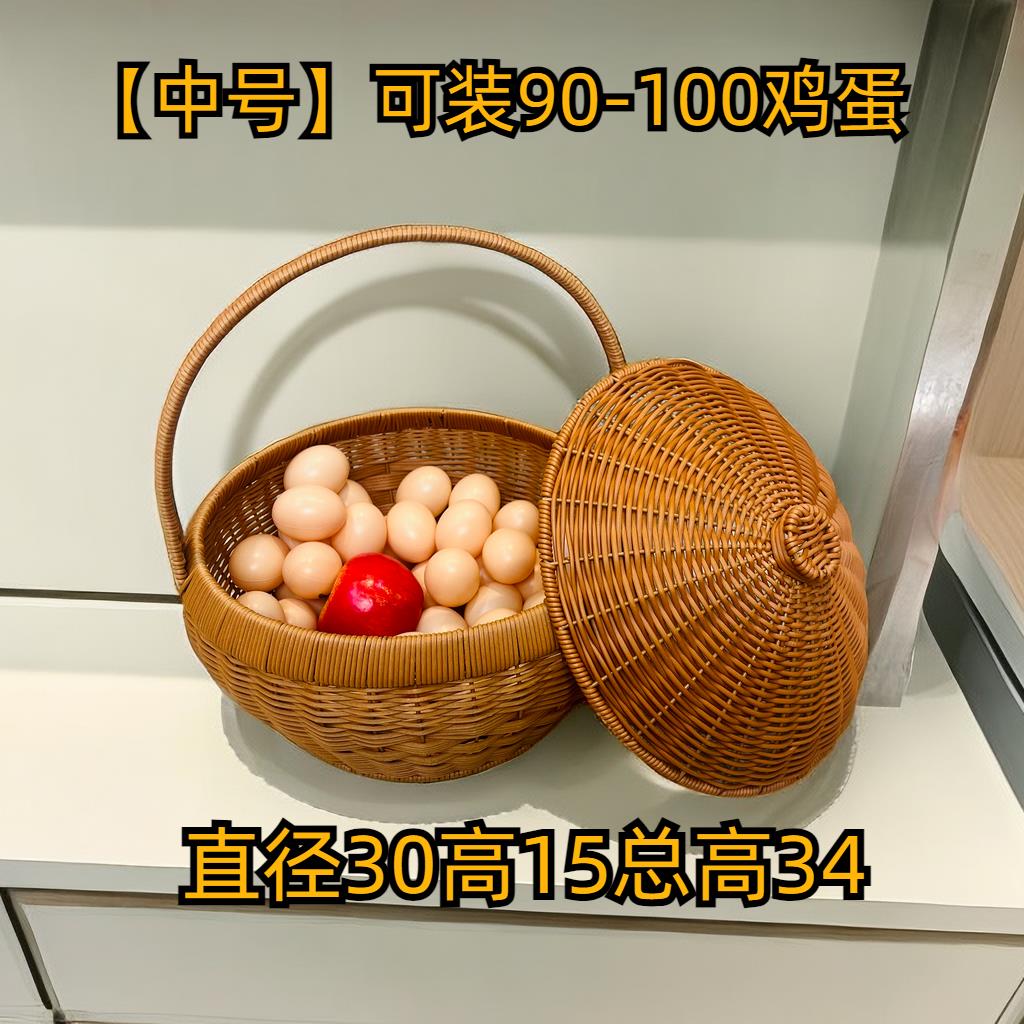 뚜껑이 있는 농촌 대나무 바구니, 뚜껑이 있는 바구니, 손으로 짠 용량 수납 바구니, 모조 등나무 야외