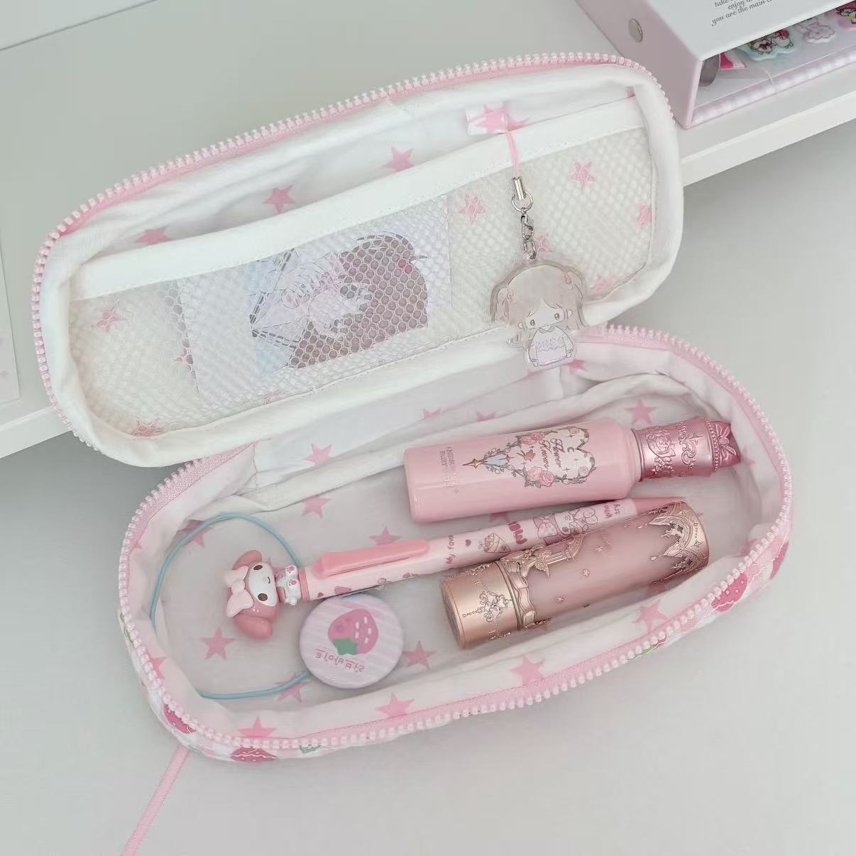 인기있는 귀여운 딸기 문구 상자 ins 소녀 학생 고급 문구 보관 가방 작은 신선한 틈새 연필 가방