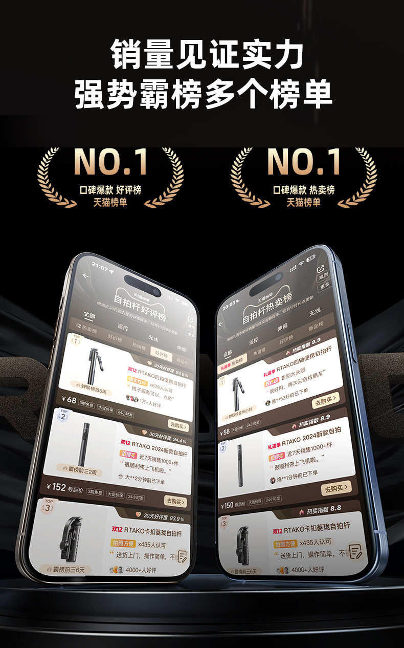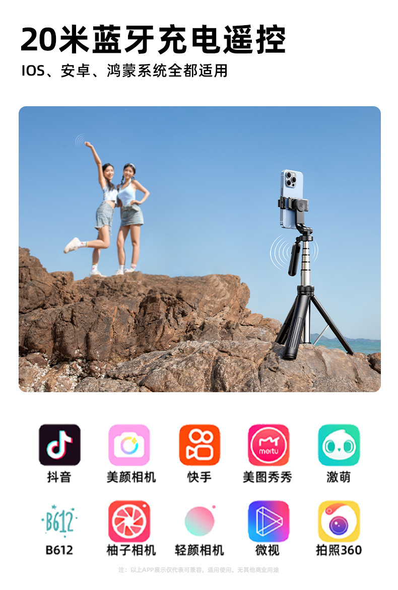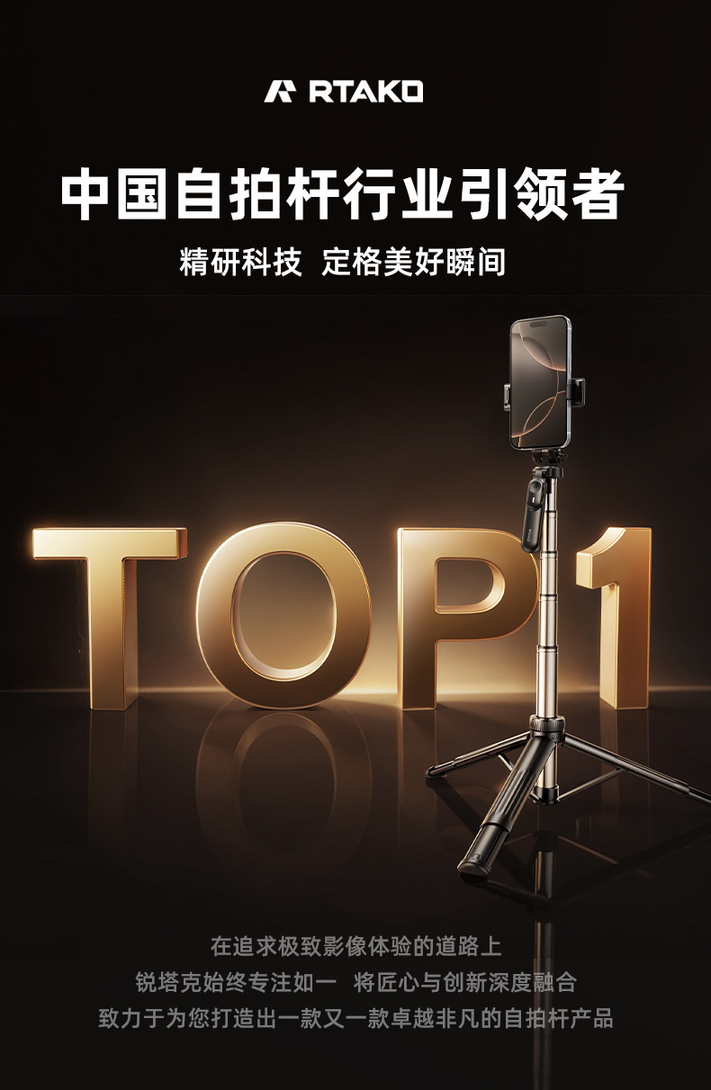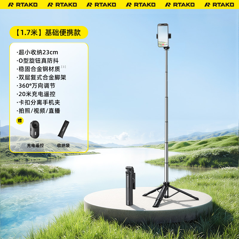 RTAKO 셀카봉 2025 새로운 여행 휴대용 바닥 삼각대 휴대 전화 사진 라이브 방송 촬영 스탠드