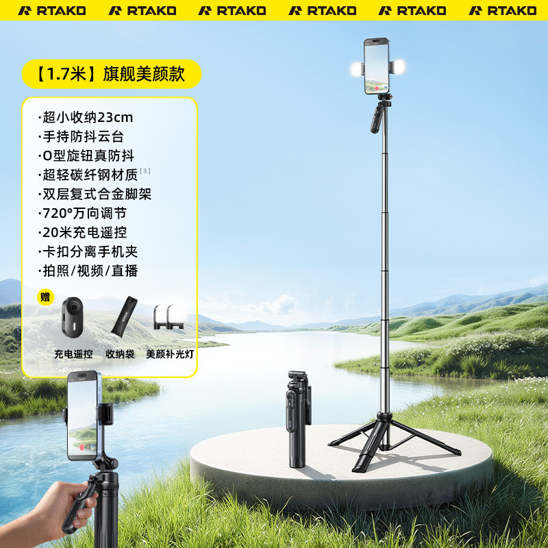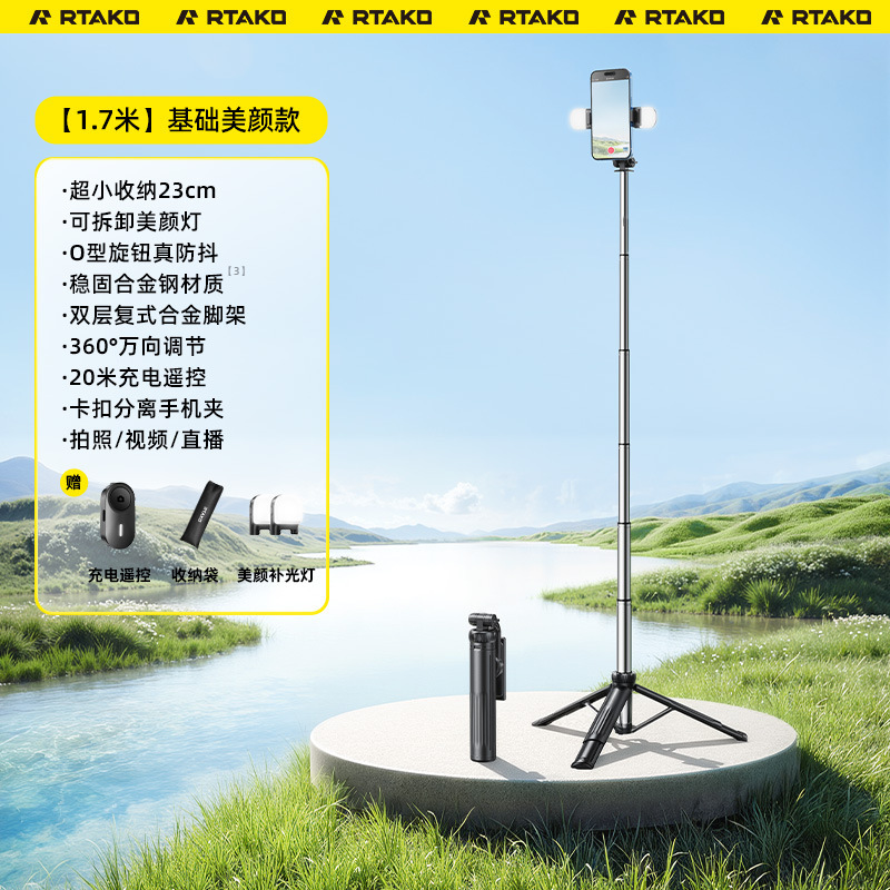 • [1.7m 손떨림 방지 뷰티 모델] 무료 충전 리모컨 + 듀얼 뷰티 램프