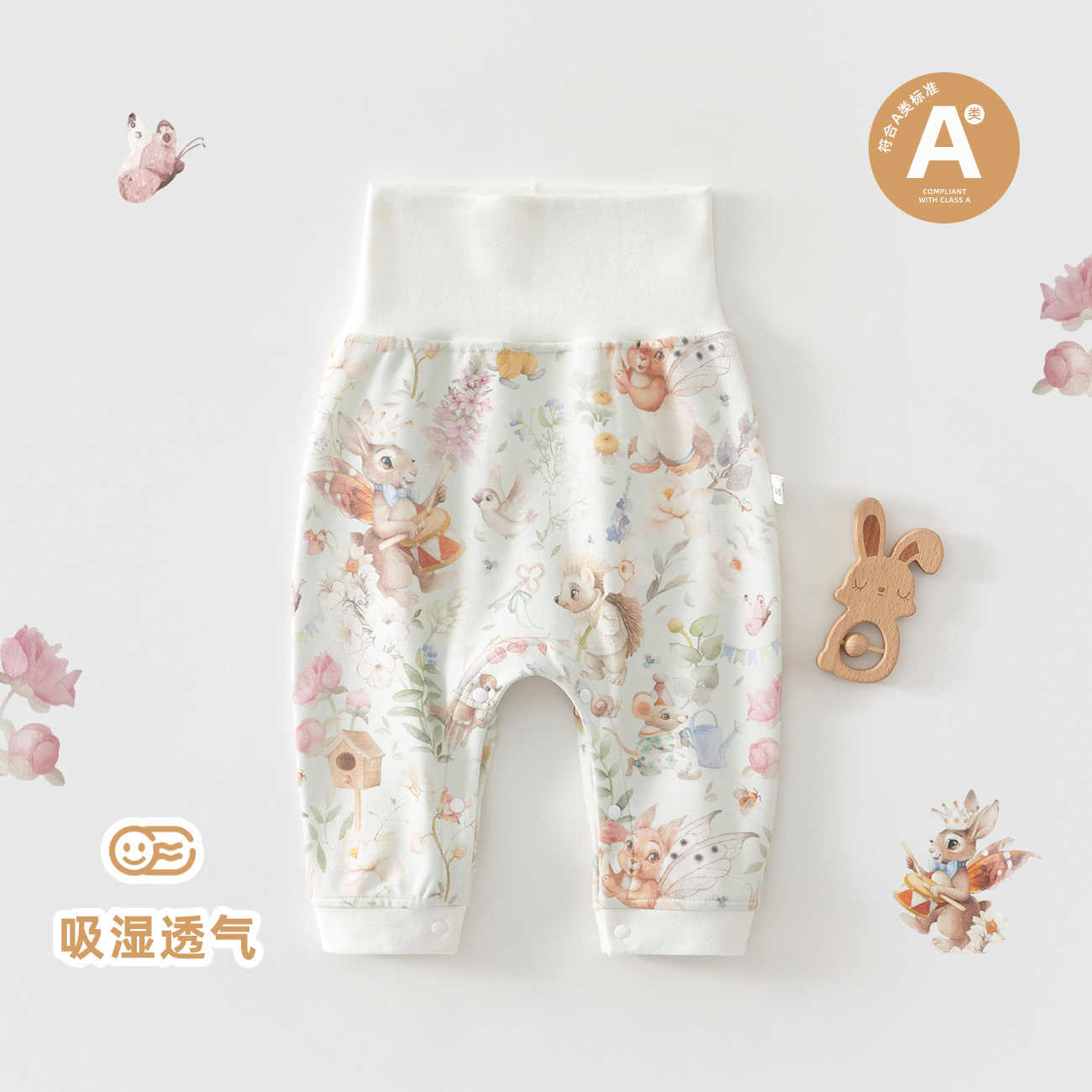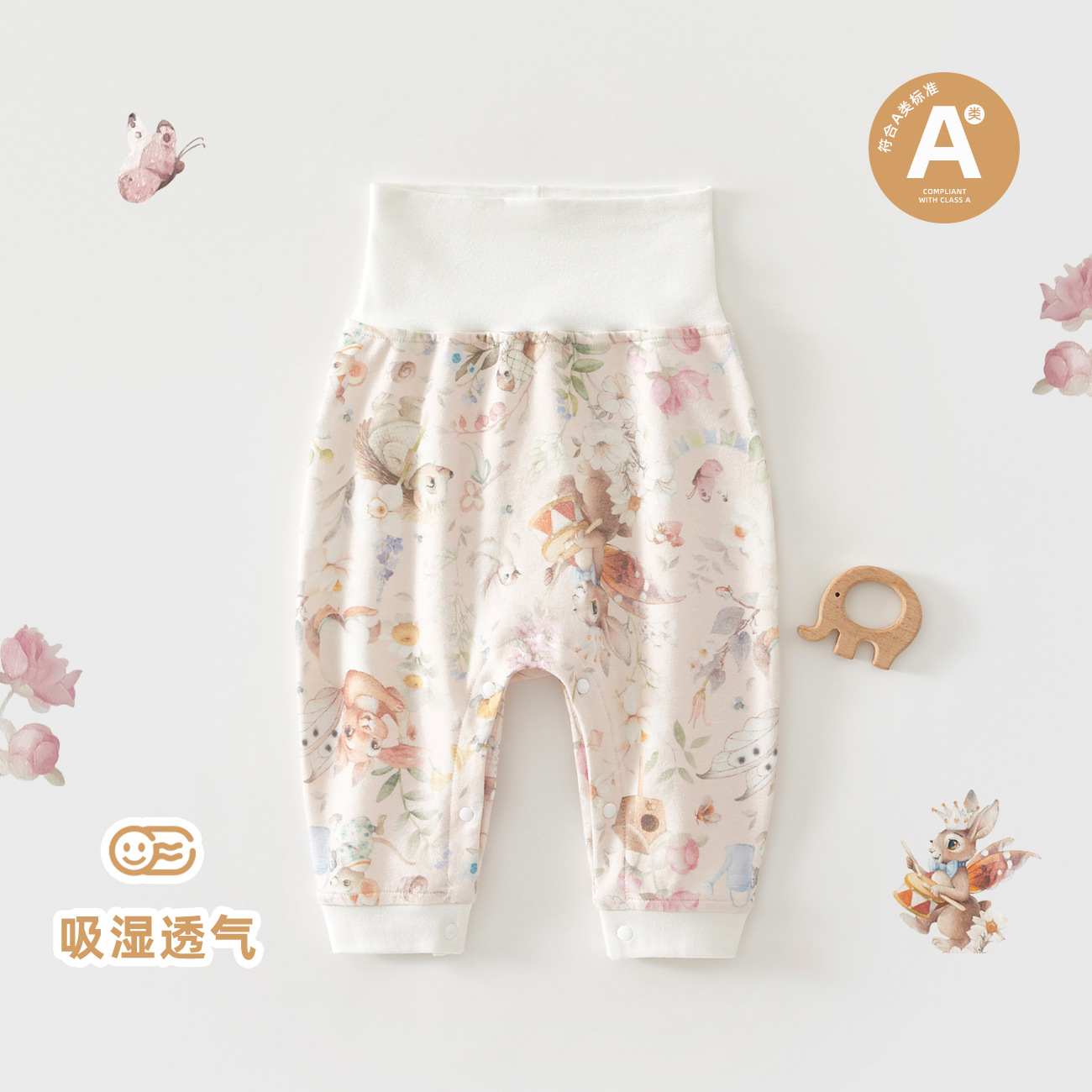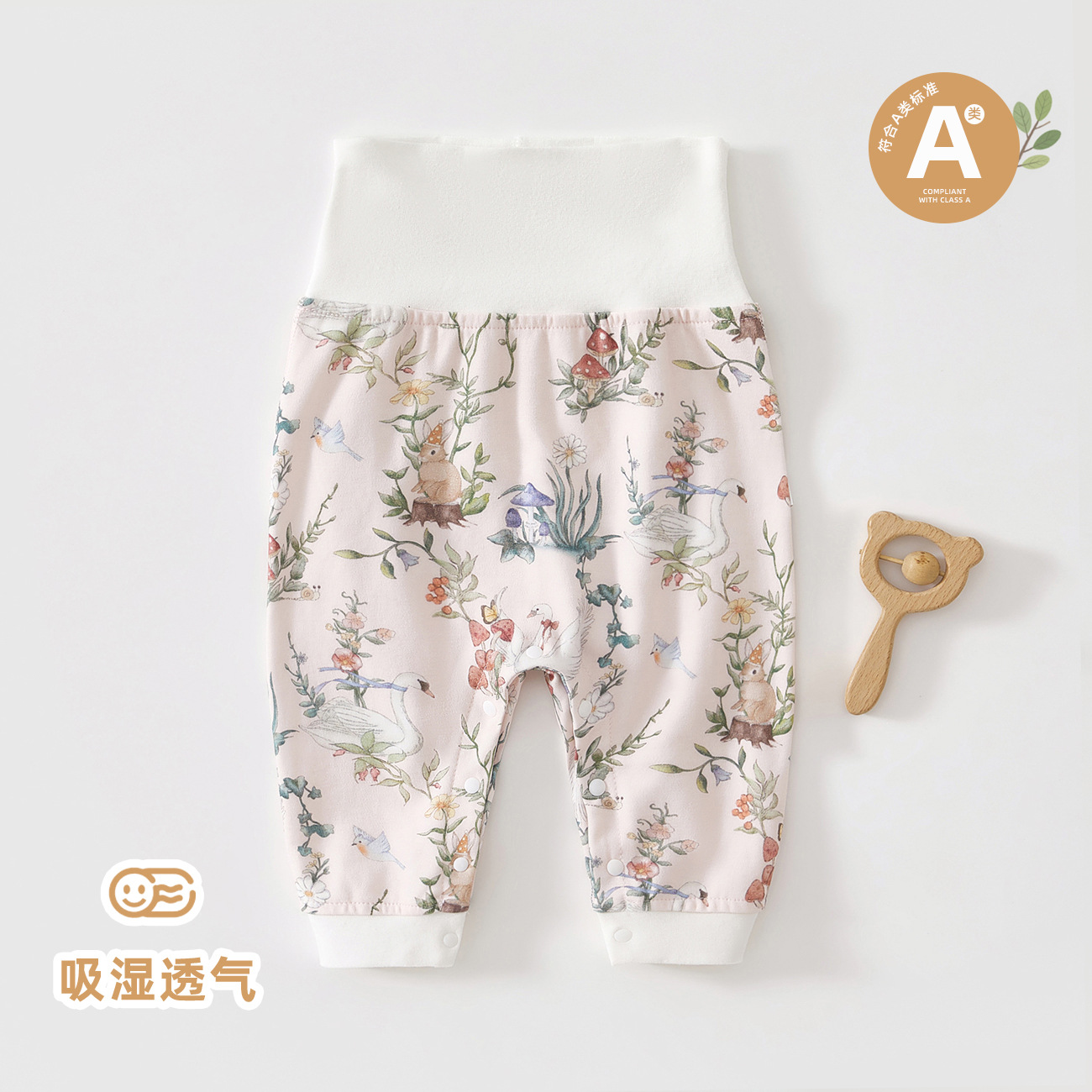 영유아를 위한 부드럽고 편안한 사계절 착용 가능한 바지, 순면, 본리스 공예, 베이비 하이웨이스트 봄, 가을 레깅스