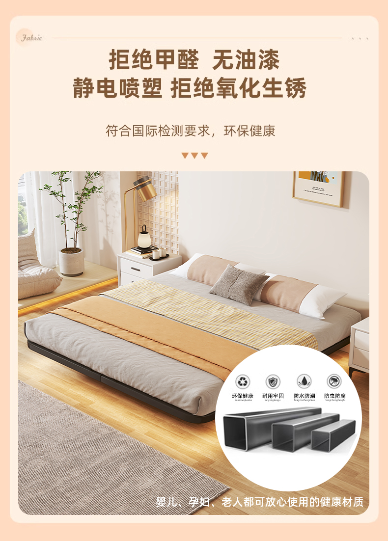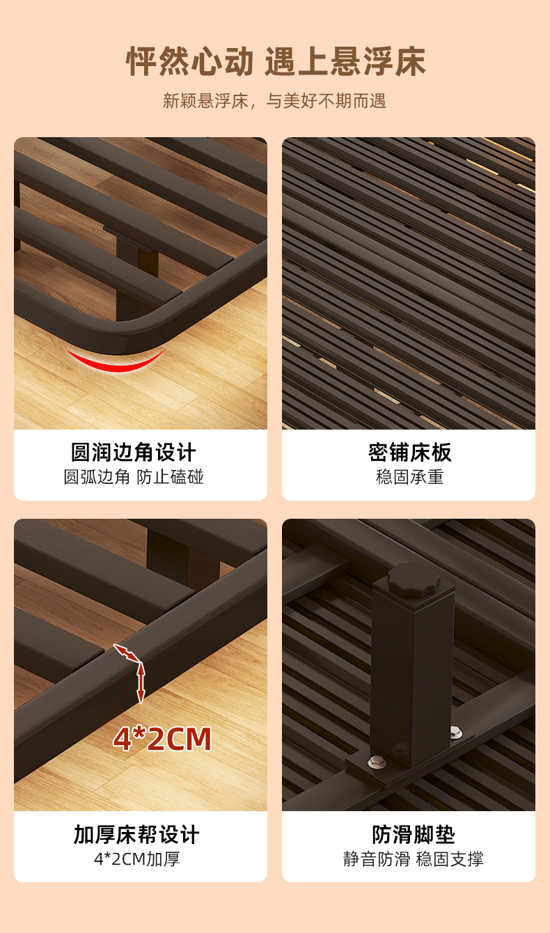 공중부양 침대 현대적인 미니멀리스트 철제 더블 침대 홈 마스터 침실 침대 없음 침대 프레임 행 뼈대 다다미 철제 프레임 침대