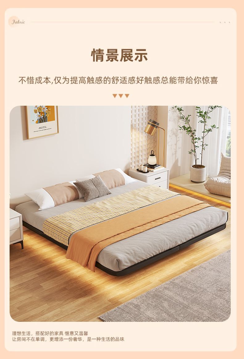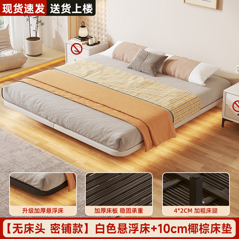 • ФФФ∋∋∋【밀집형 모델】블랙 플로팅 침대 + 10cm 코코넛 야자 매트리스 + 침대 옆 테이블*2ФФФ∋∋∋