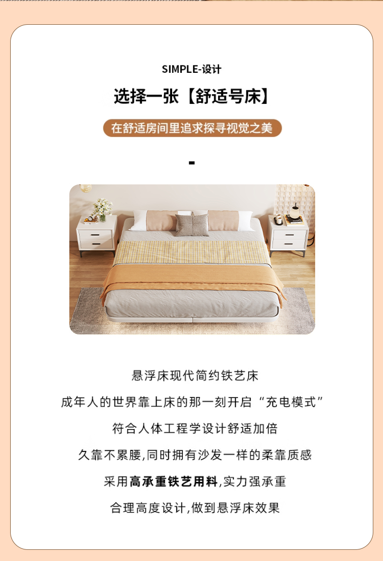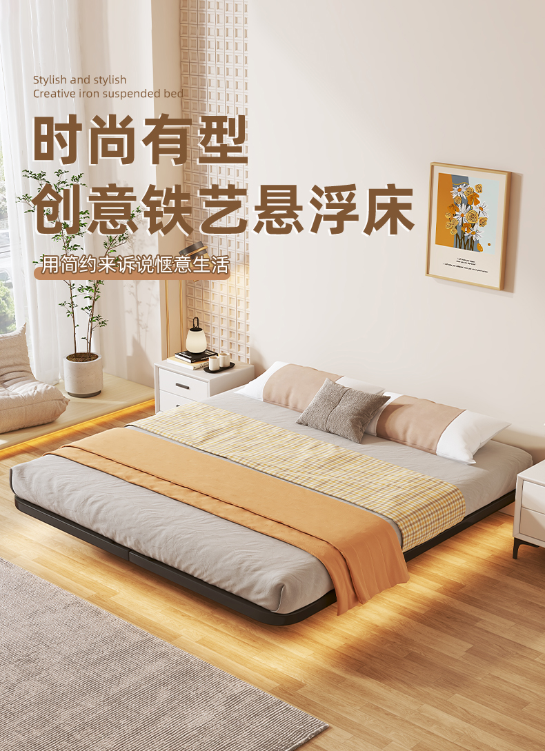 공중부양 침대 현대적인 미니멀리스트 철제 더블 침대 홈 마스터 침실 침대 없음 침대 프레임 행 뼈대 다다미 철제 프레임 침대스토어 가기