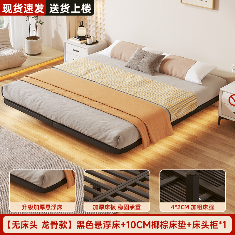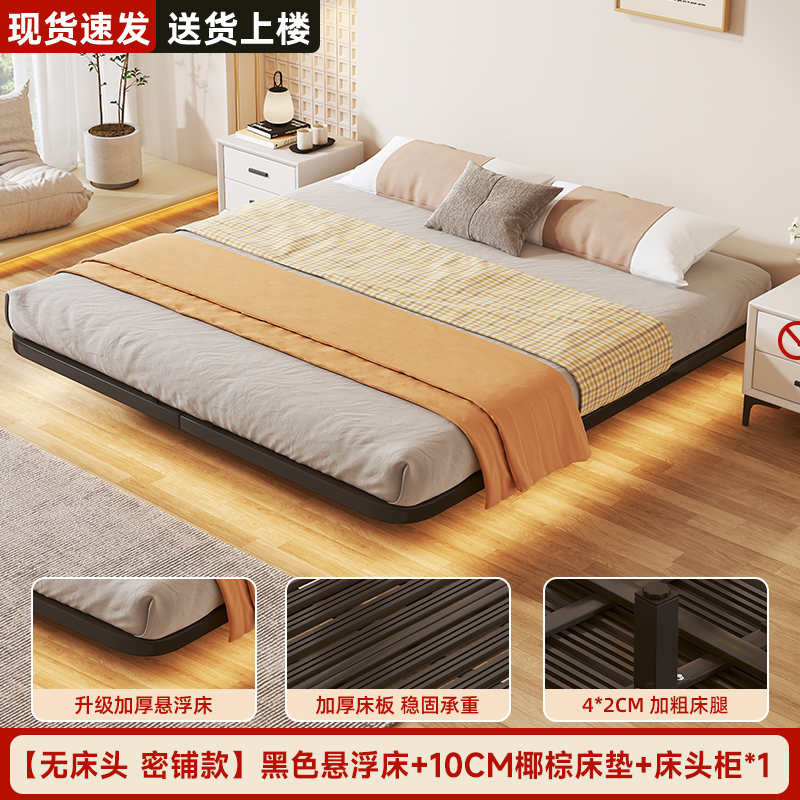 • ФФФ∋∋∋【밀집형 모델】블랙 플로팅 침대 + 10cm 코코넛 야자 매트리스 + 침대 옆 테이블*1ФФФ∋∋∋