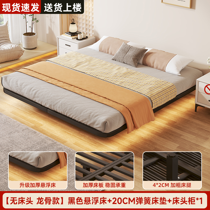 • ФФФ∋∋∋【밀집형 모델】블랙 플로팅 침대 + 20cm 스프링 코코넛 야자 매트리스 + 침대 옆 테이블*2ФФФ∋∋∋