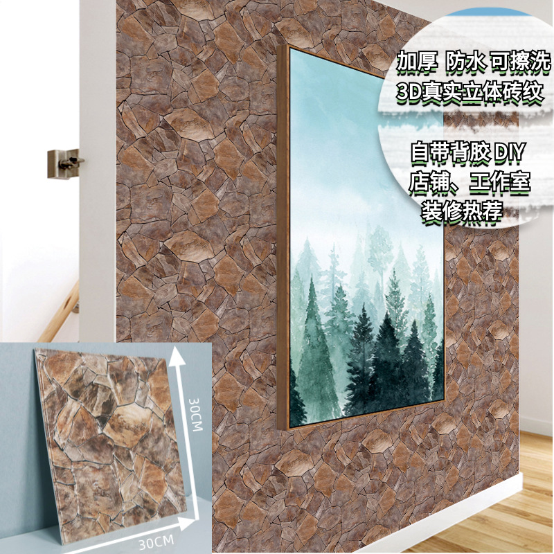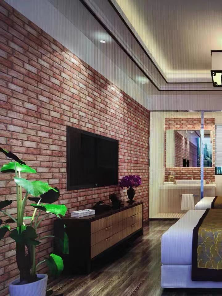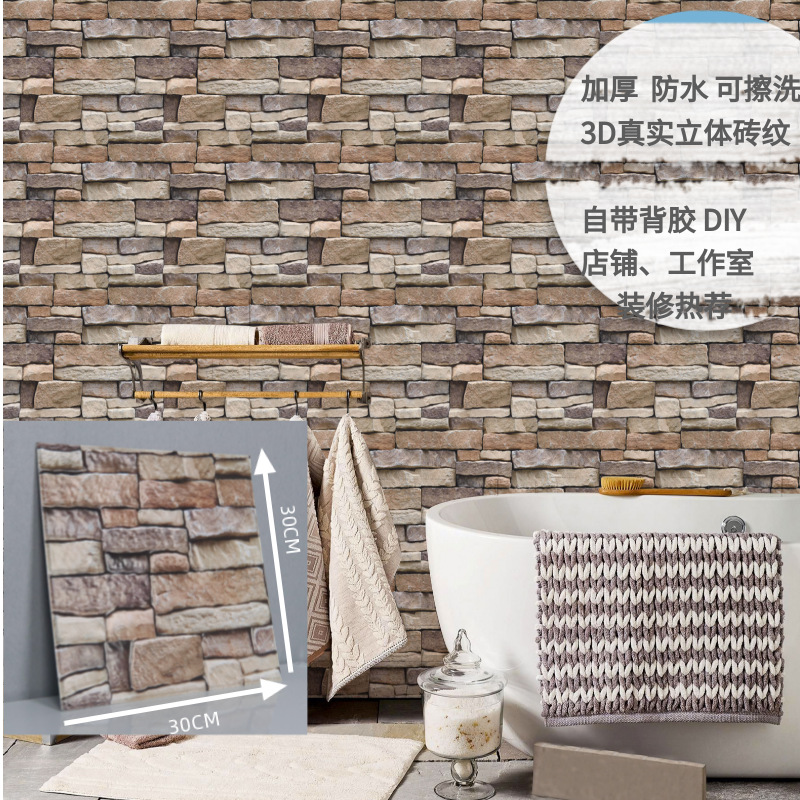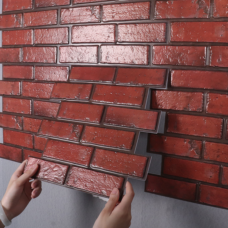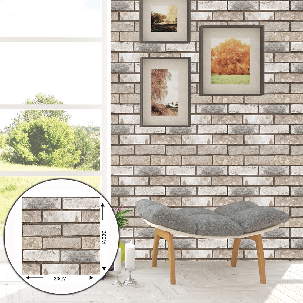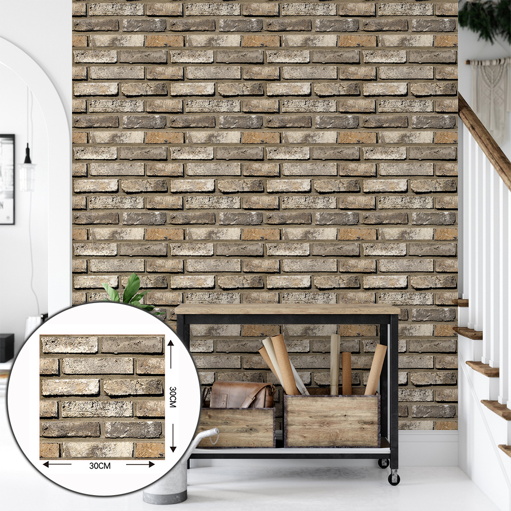 공장 직접 공급 3D 입체 벽 스티커 두꺼운 방수 복고풍 PVC 벽지 자체 접착 벽돌 패턴 벽 스티커 배경 벽스토어 가기