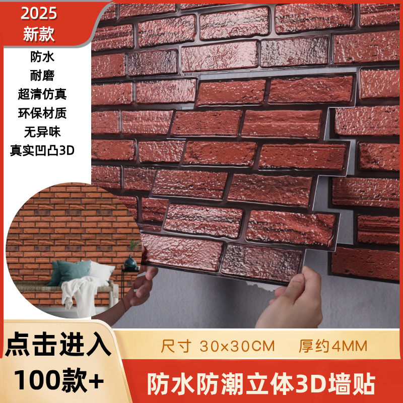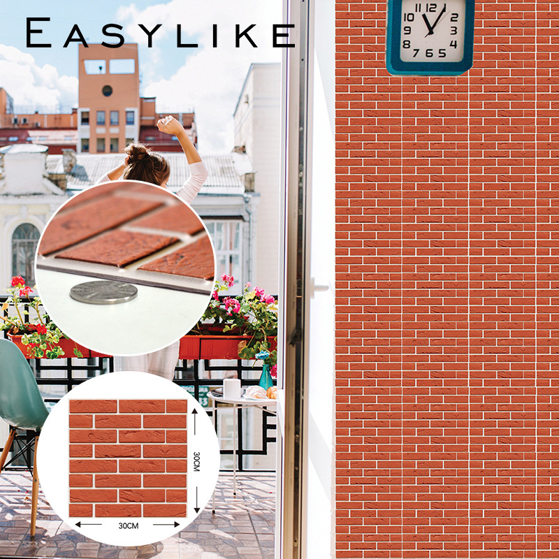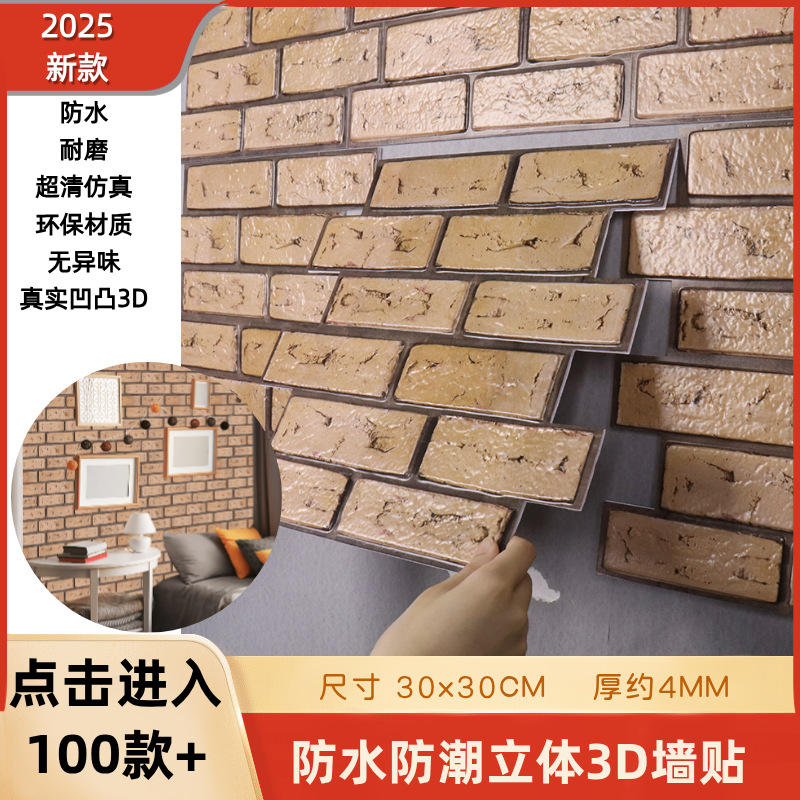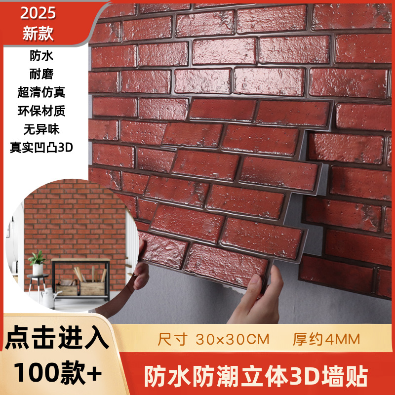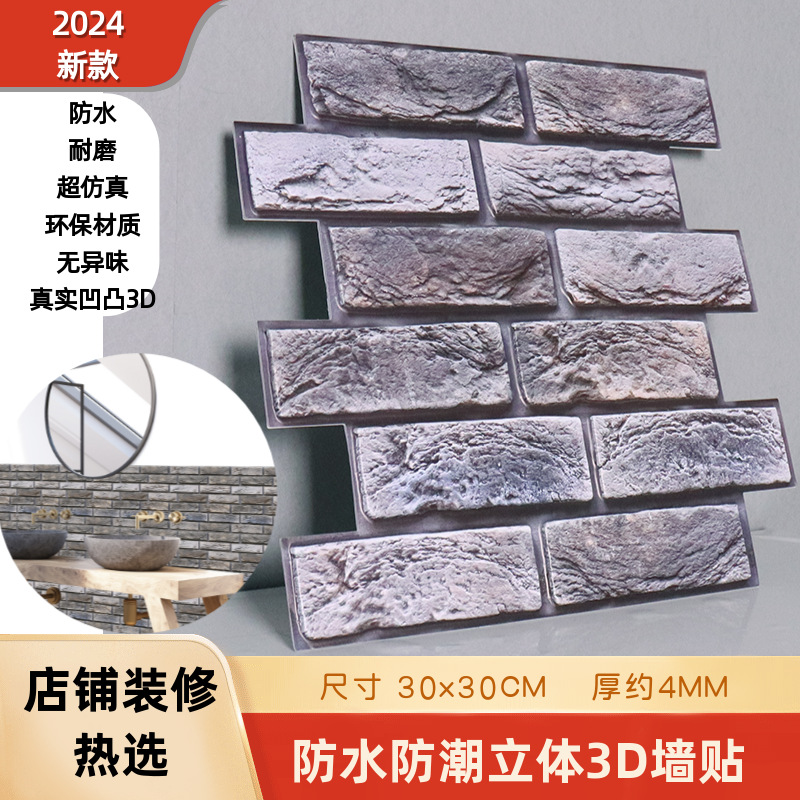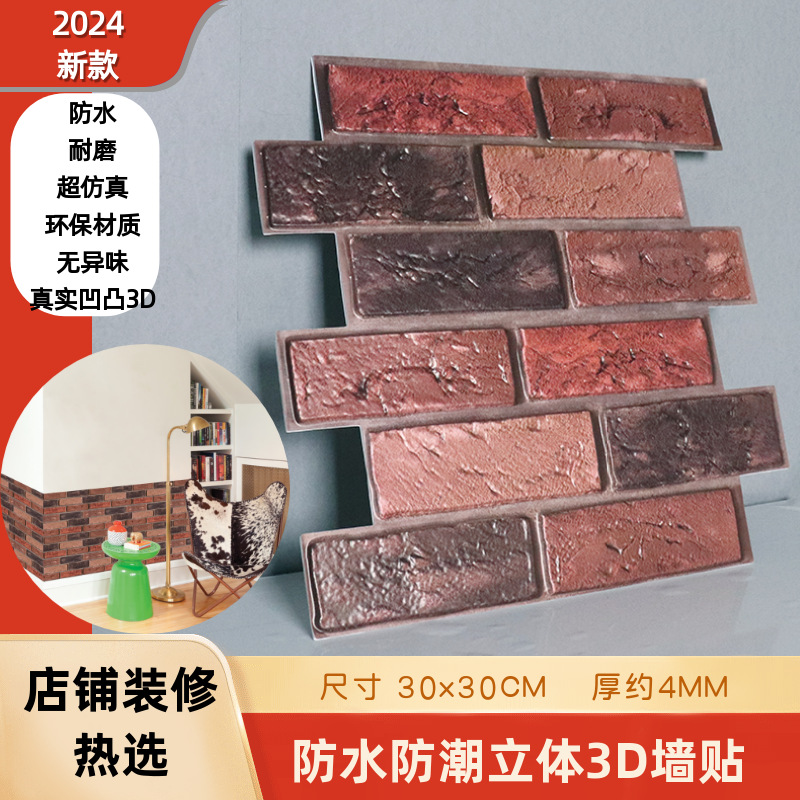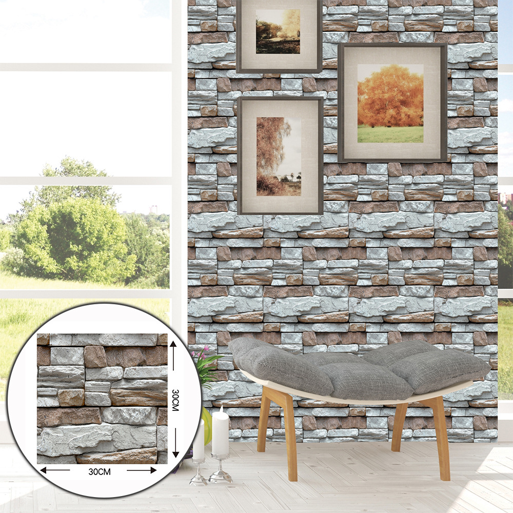 공장 직접 공급 3D 입체 벽 스티커 두꺼운 방수 복고풍 PVC 벽지 자체 접착 벽돌 패턴 벽 스티커 배경 벽스토어 가기