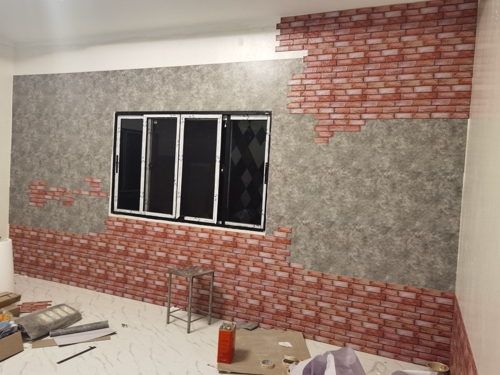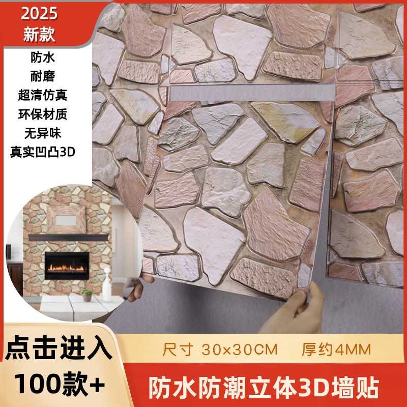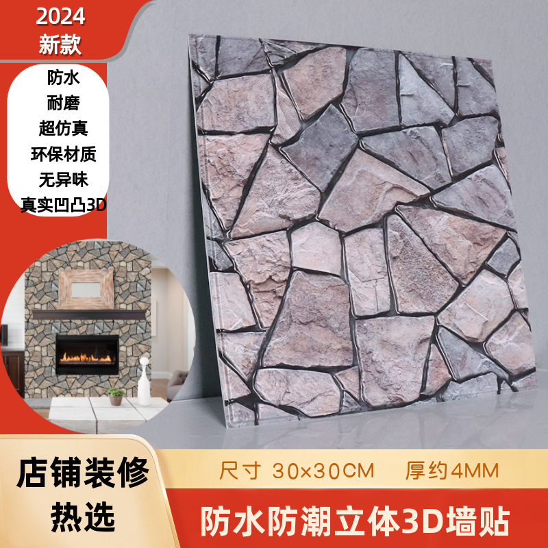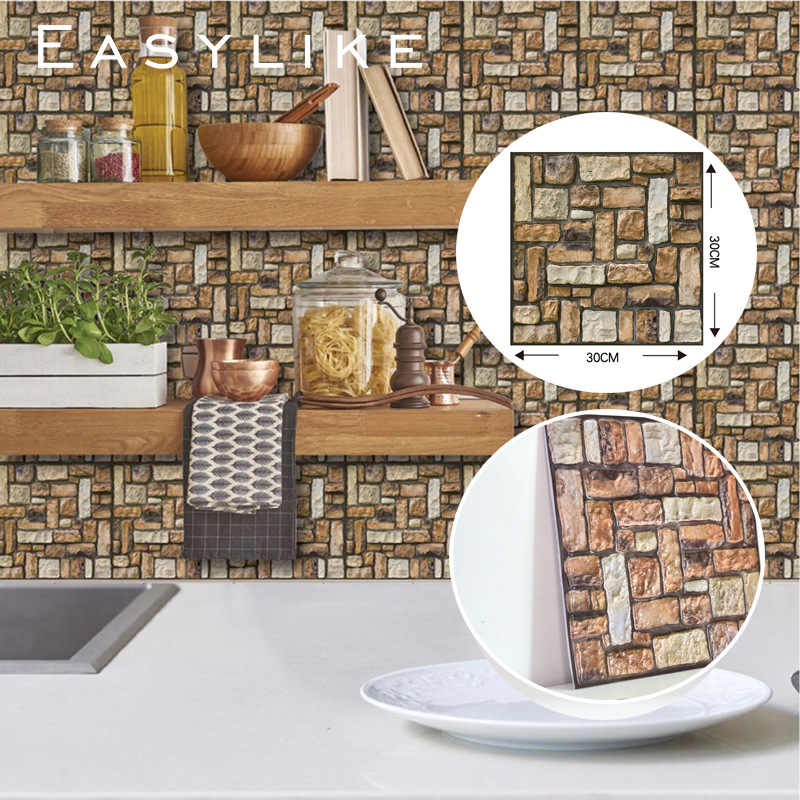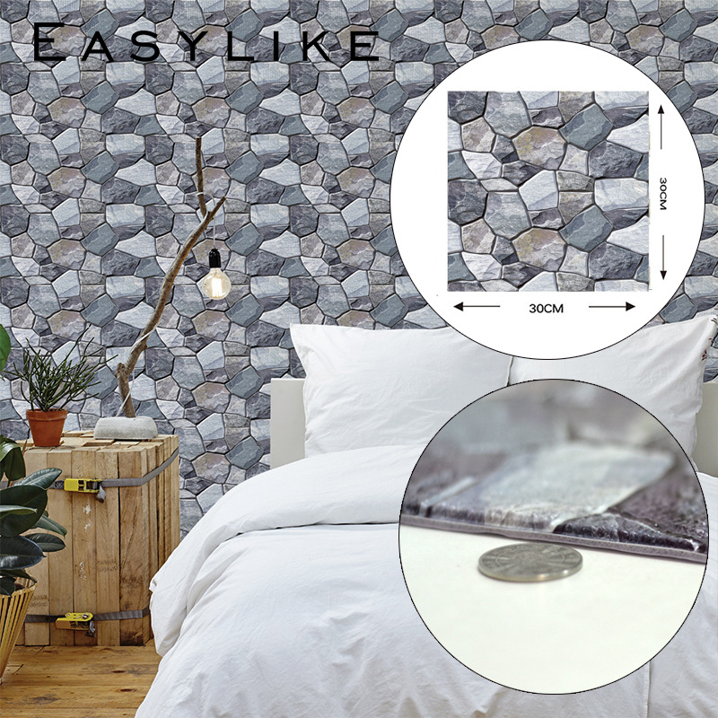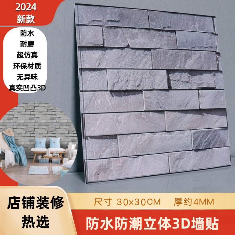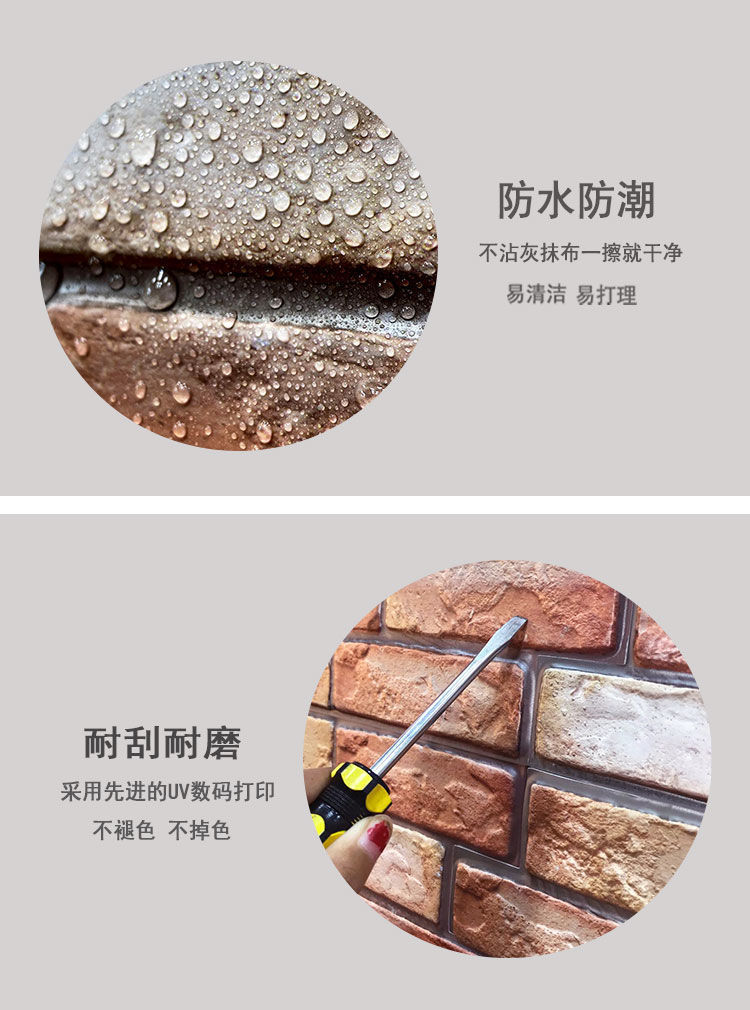 공장 직접 공급 3D 입체 벽 스티커 두꺼운 방수 복고풍 PVC 벽지 자체 접착 벽돌 패턴 벽 스티커 배경 벽스토어 가기