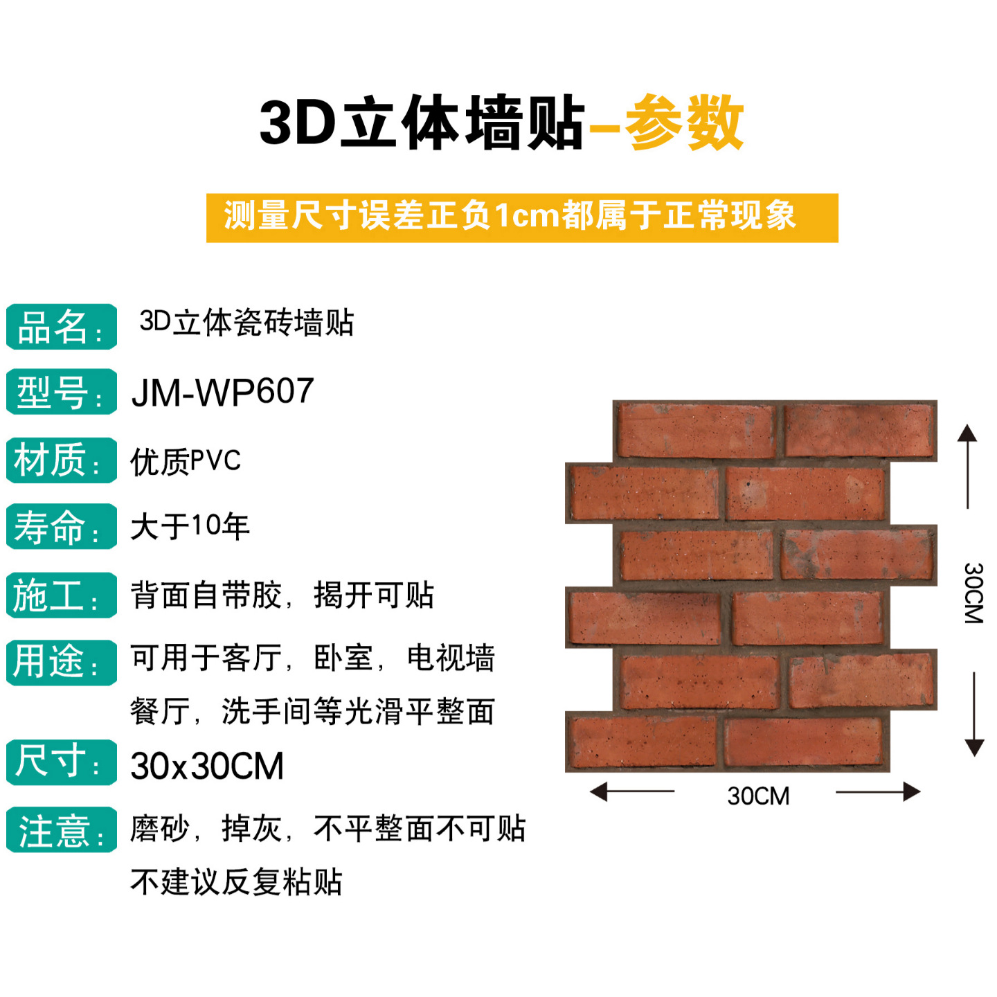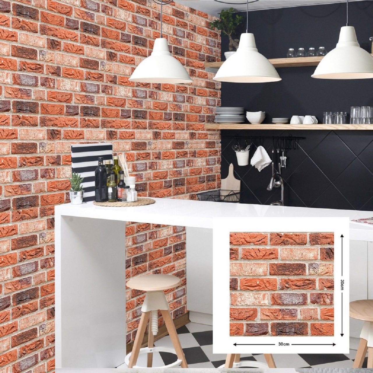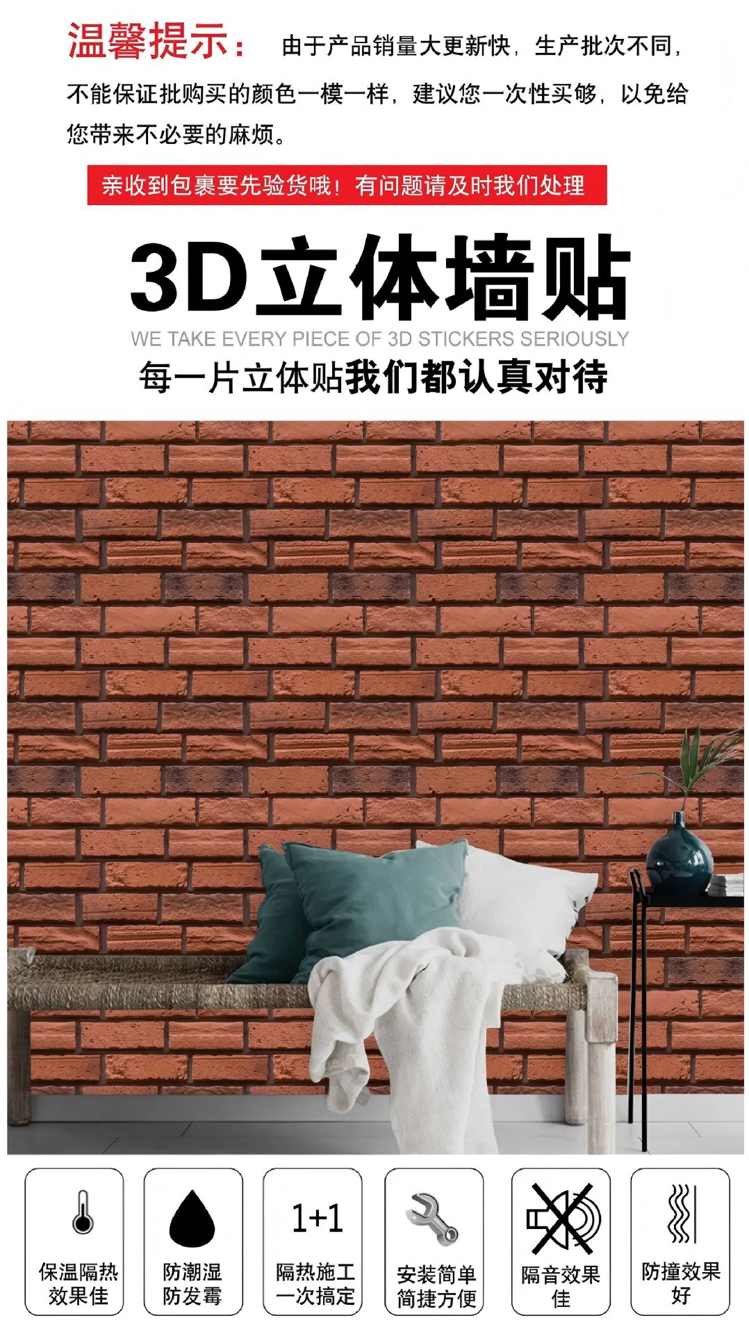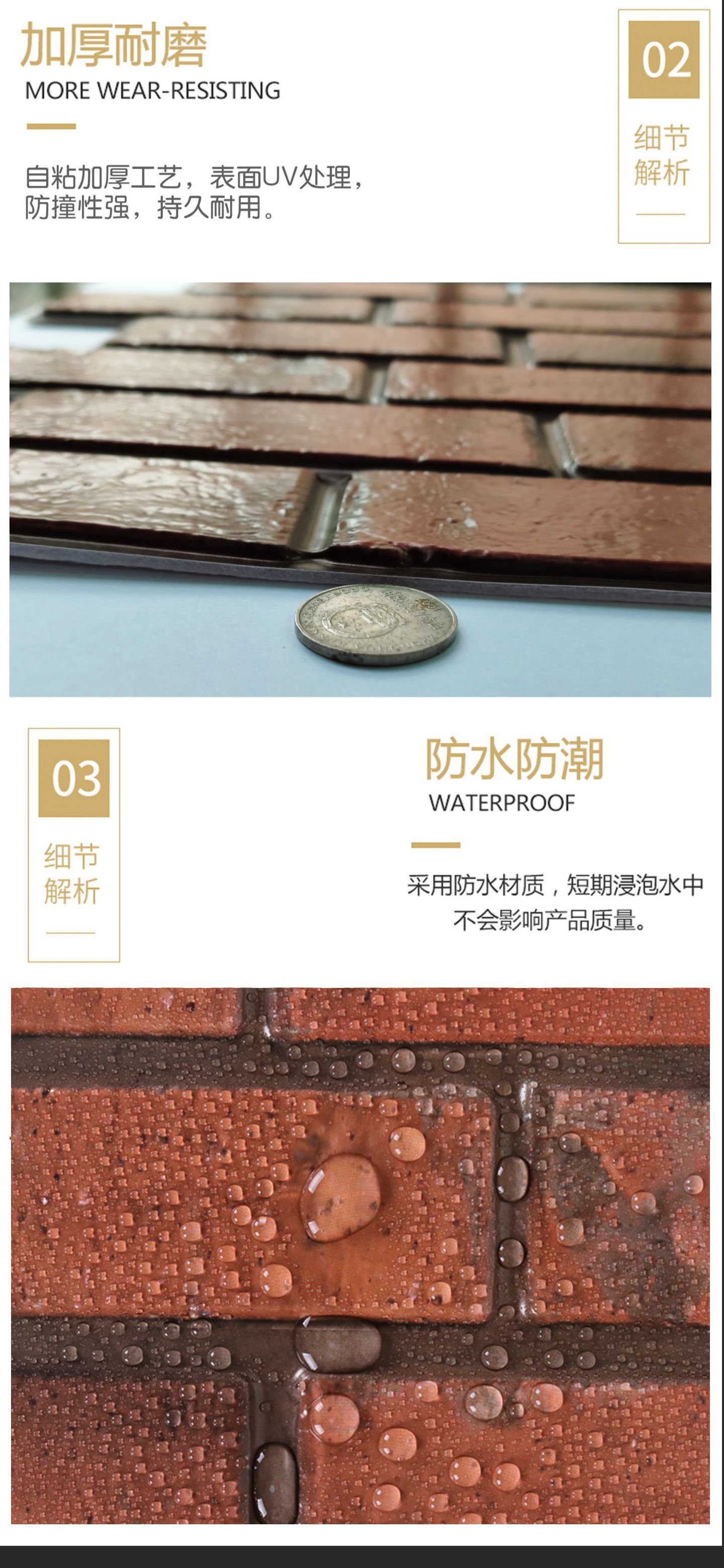 공장 직접 공급 3D 입체 벽 스티커 두꺼운 방수 복고풍 PVC 벽지 자체 접착 벽돌 패턴 벽 스티커 배경 벽스토어 가기
