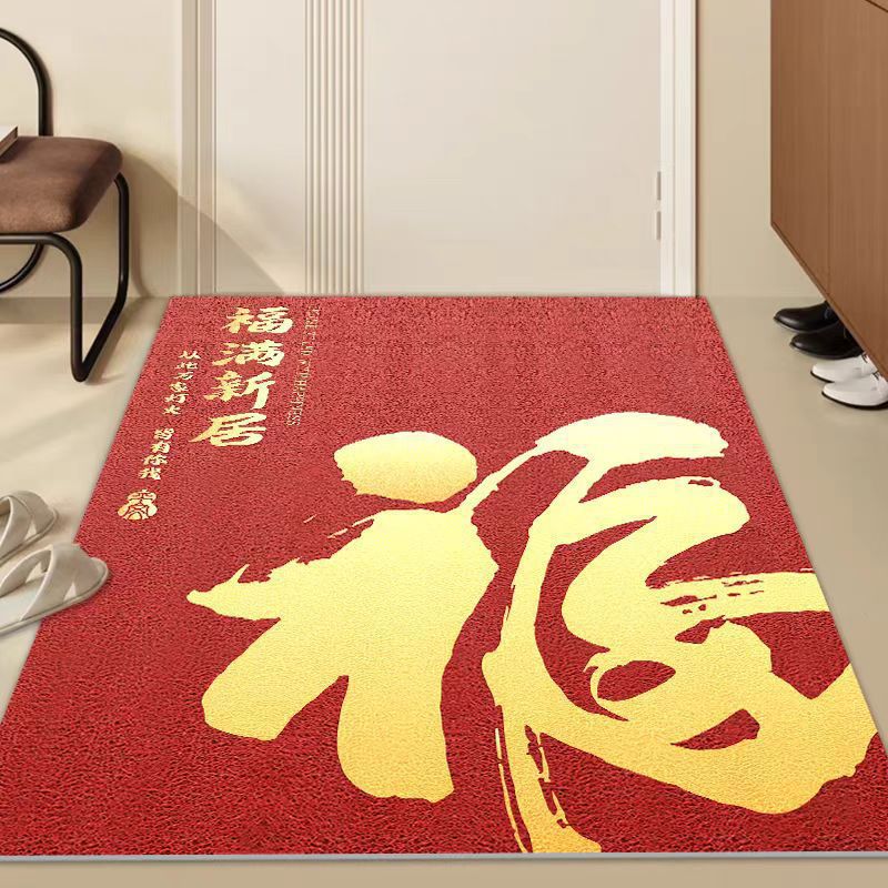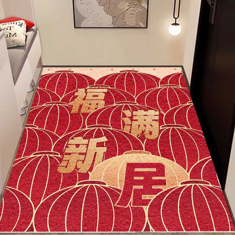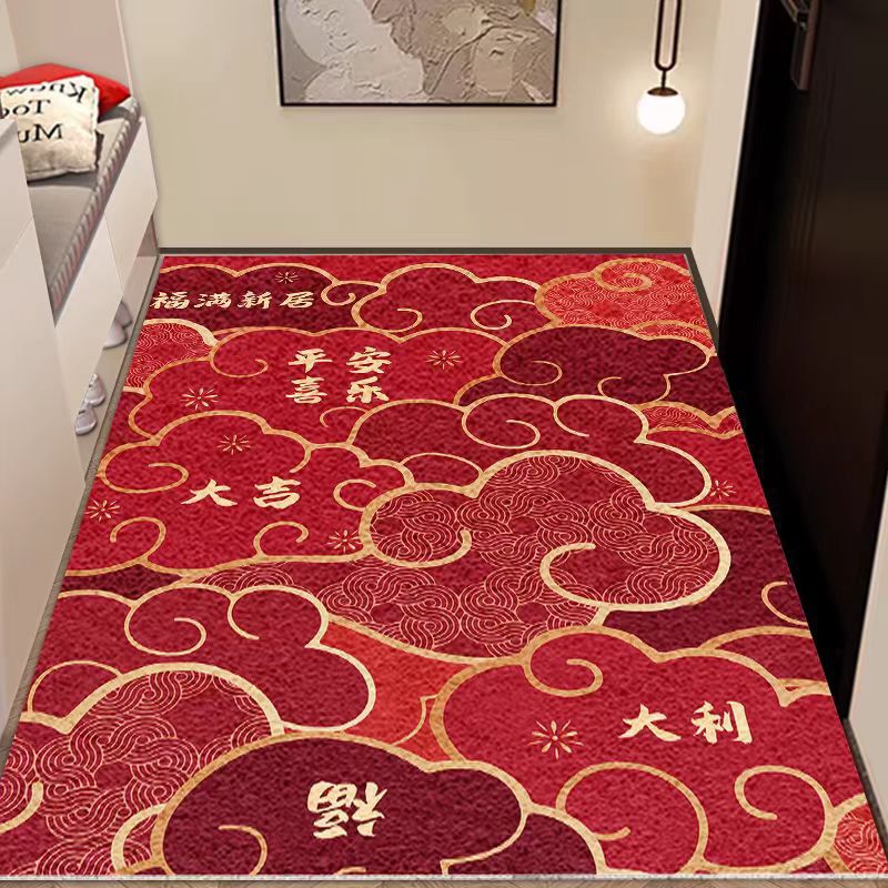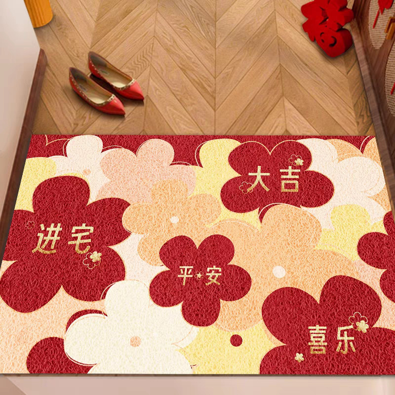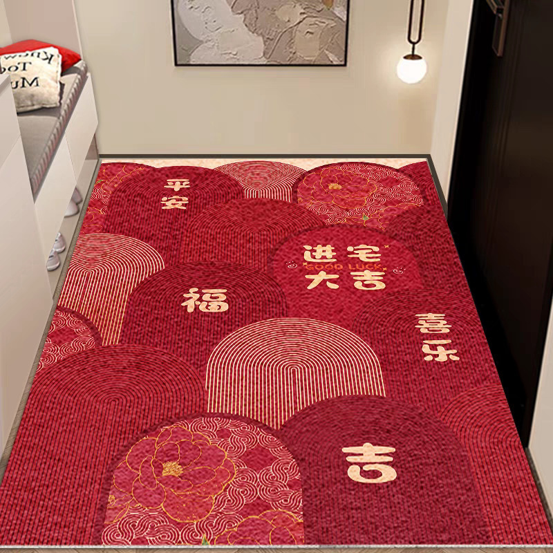 입구 매트 빨간색 축제용 가정용 현관 매트 바닥재 절단 가능 오염 방지 관리 필요 없음 실크 링스토어 가기
