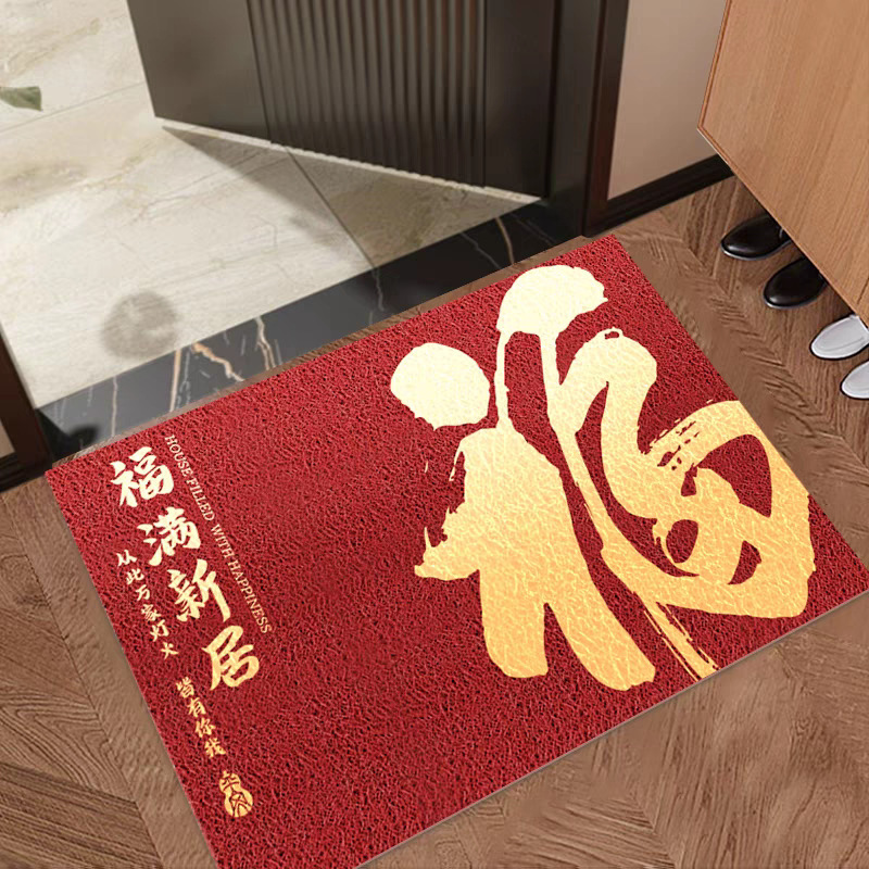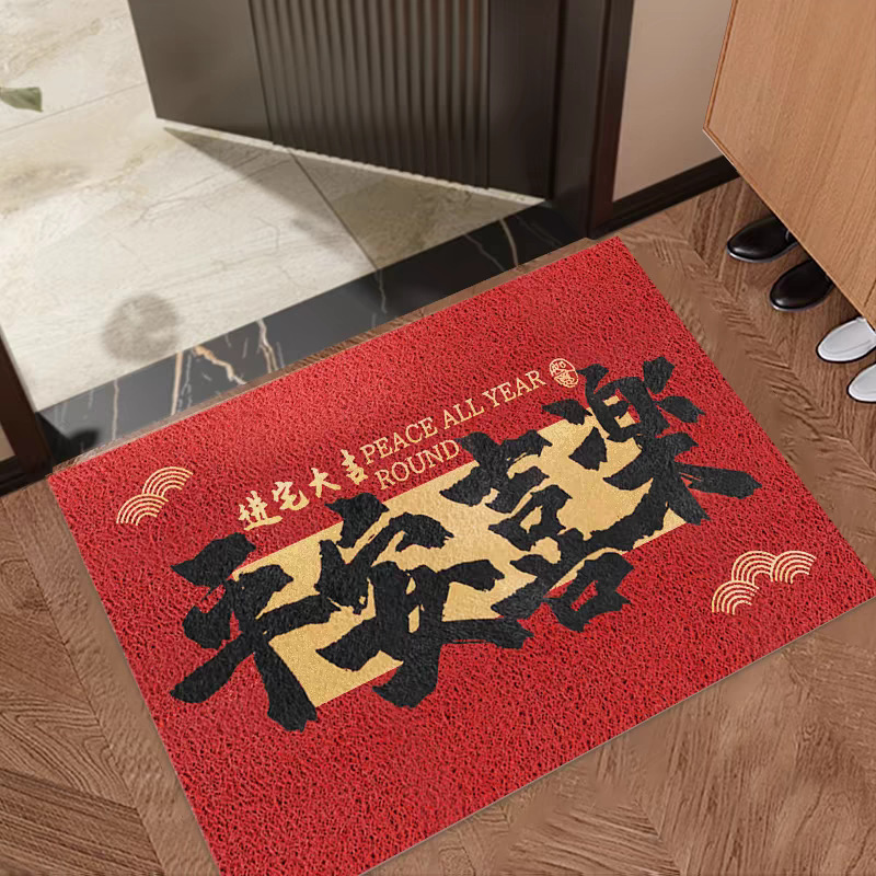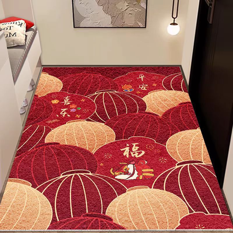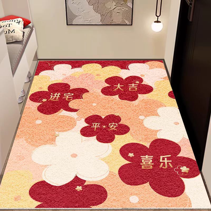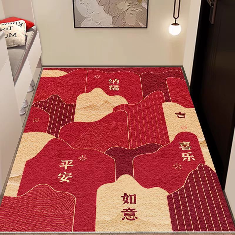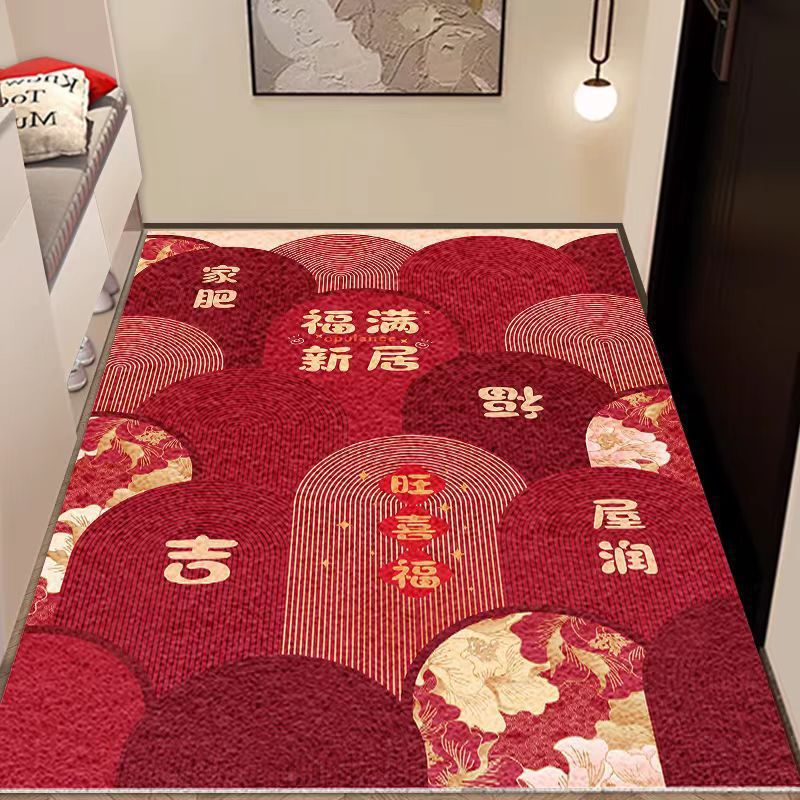 입구 매트 빨간색 축제용 가정용 현관 매트 바닥재 절단 가능 오염 방지 관리 필요 없음 실크 링스토어 가기