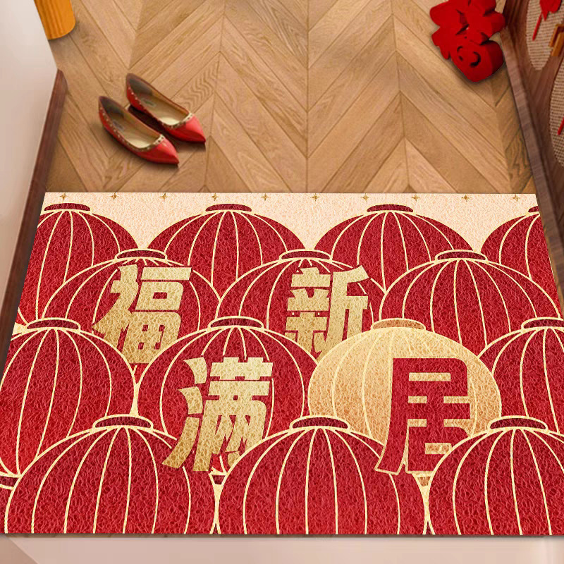 입구 매트 빨간색 축제용 가정용 현관 매트 바닥재 절단 가능 오염 방지 관리 필요 없음 실크 링