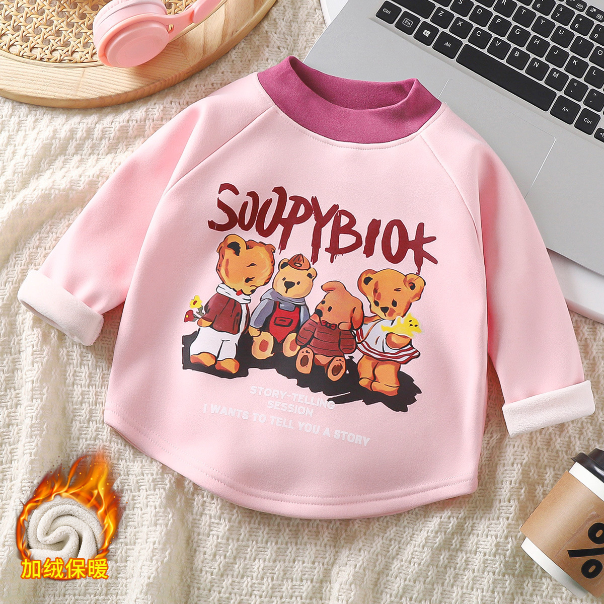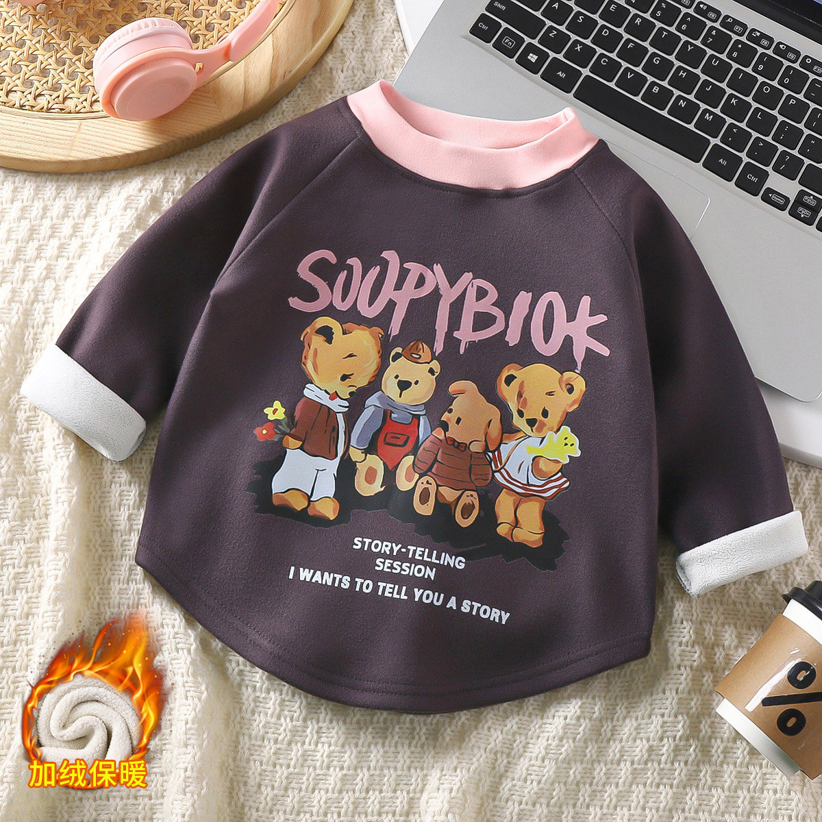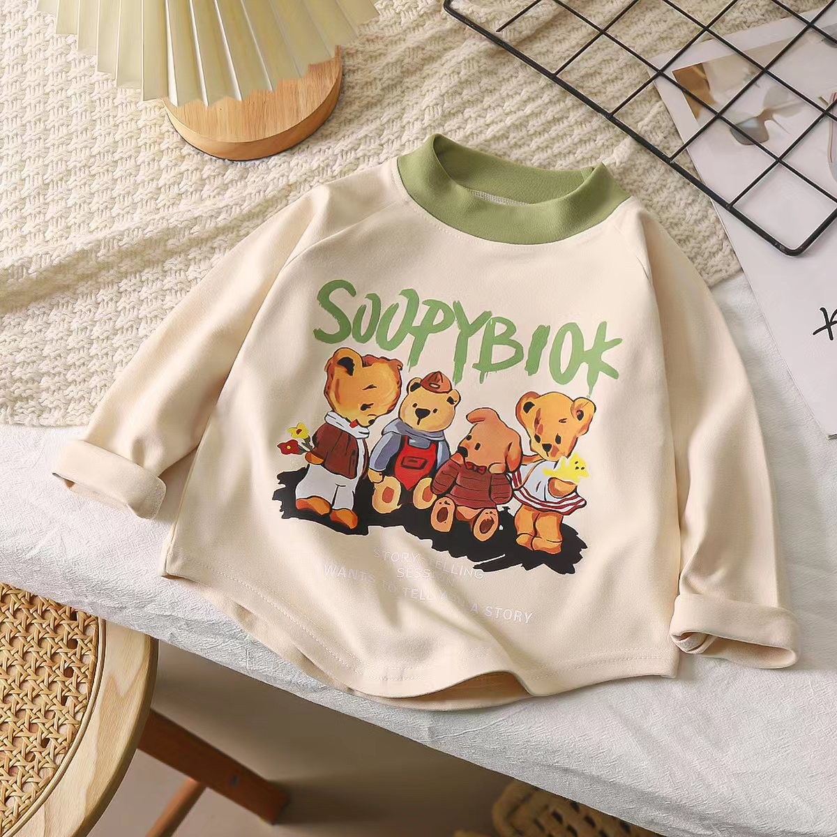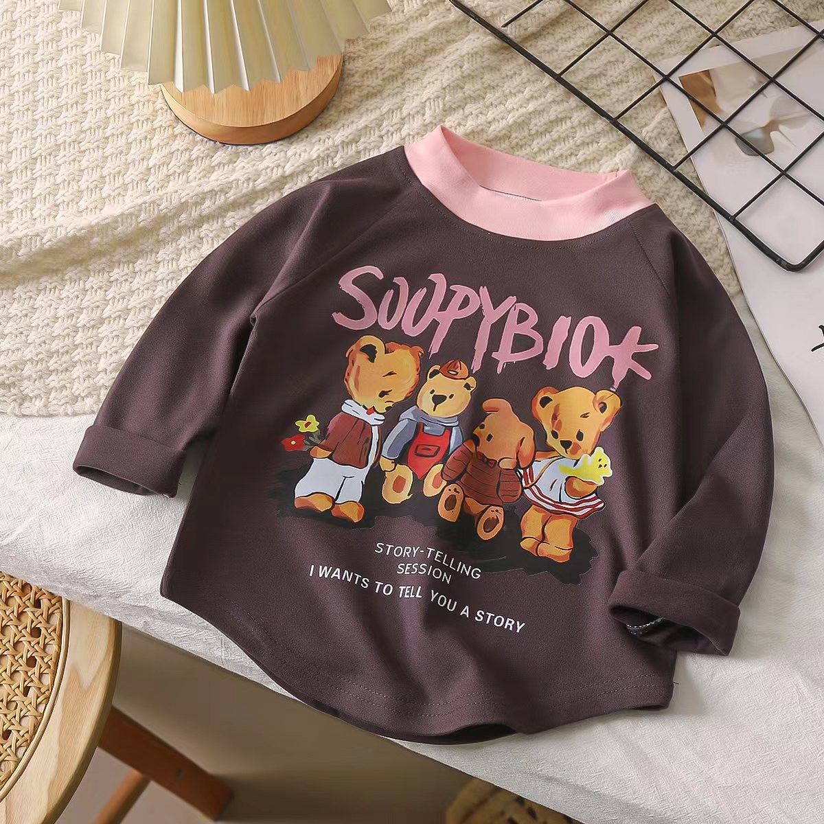 2024년 신형 곰 티셔츠, 남아용 패셔너블한 불규칙 긴팔 티셔츠, 여아용 상의, 편안한 베이스 레이어, 봄, 가을스토어 가기