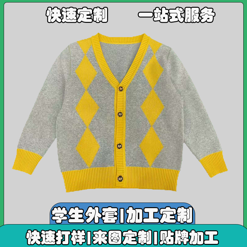 定制童装校服秋季新款儿童宝宝毛衣女童纯棉长袖针织外套男童礼服