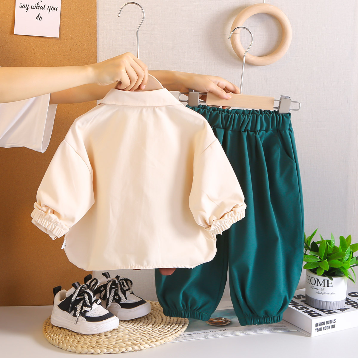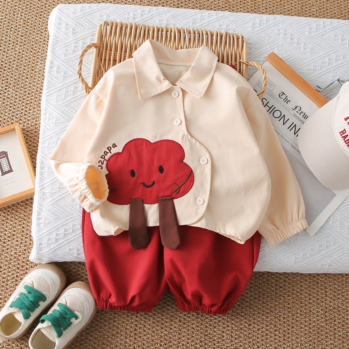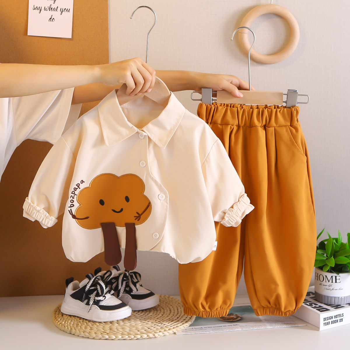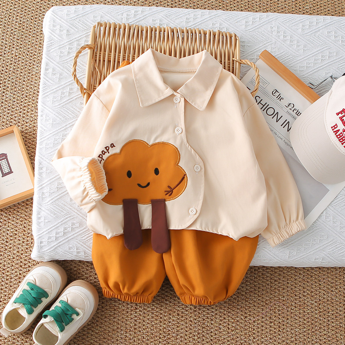 멋진 어린 소년 긴팔 셔츠 2025 봄, 가을 새로운 유행 소년 옷 한 살짜리 어린이 아기 투피스 세트