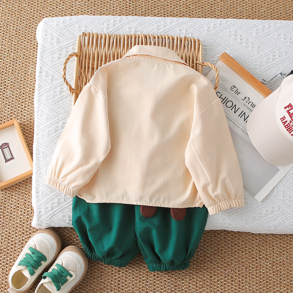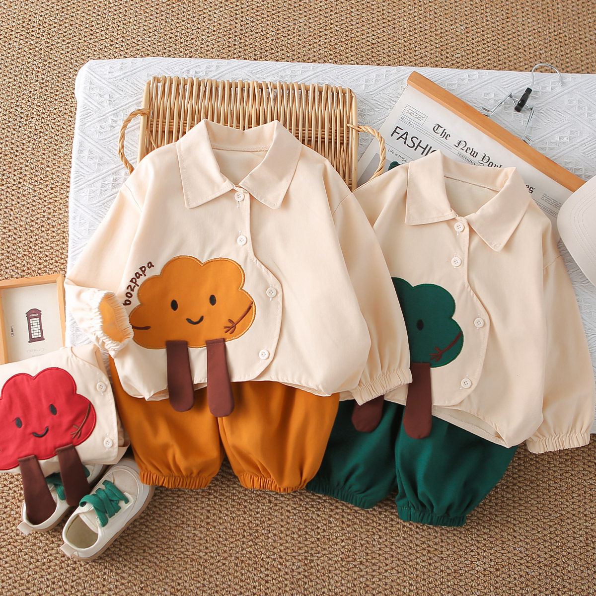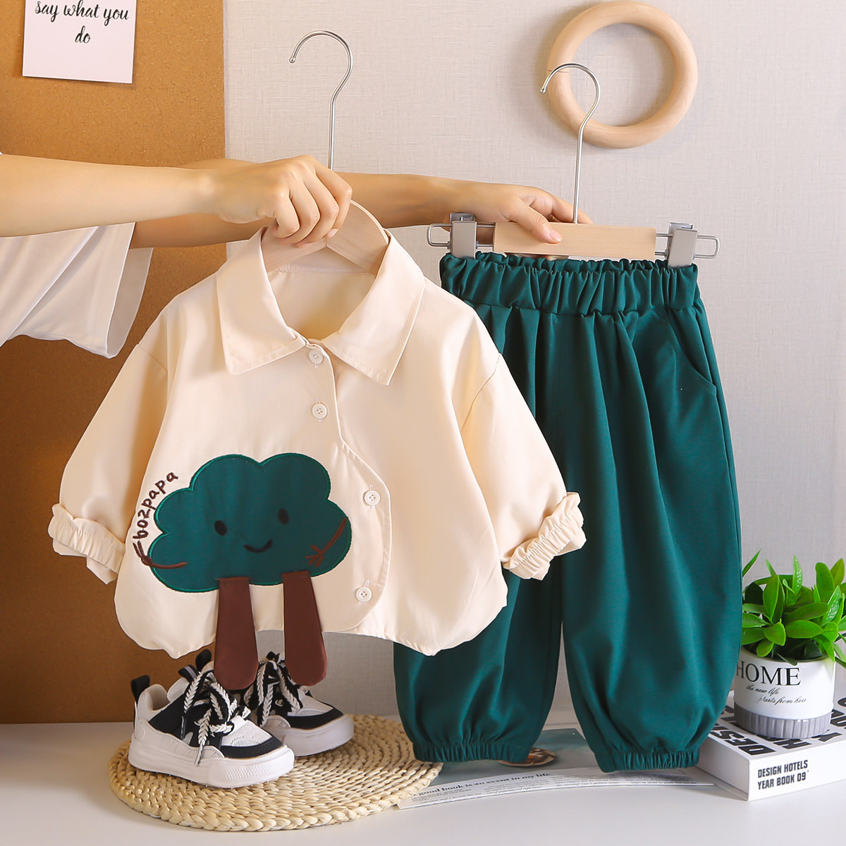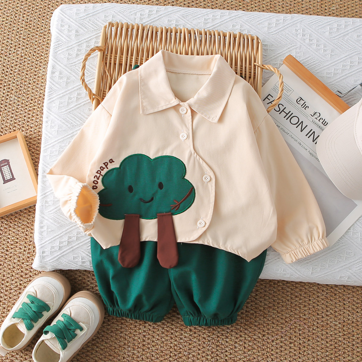 멋진 어린 소년 긴팔 셔츠 2025 봄, 가을 새로운 유행 소년 옷 한 살짜리 어린이 아기 투피스 세트스토어 가기