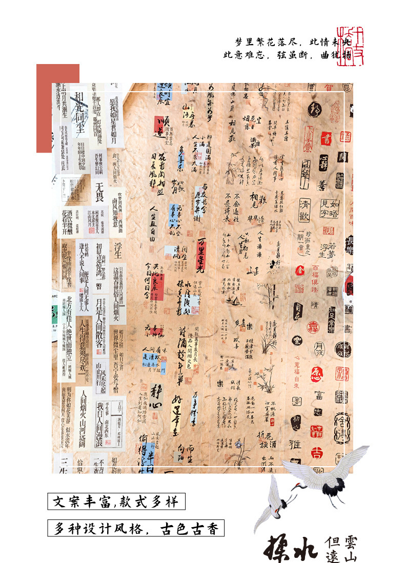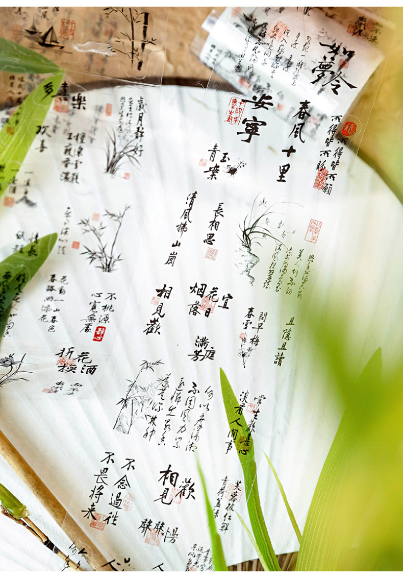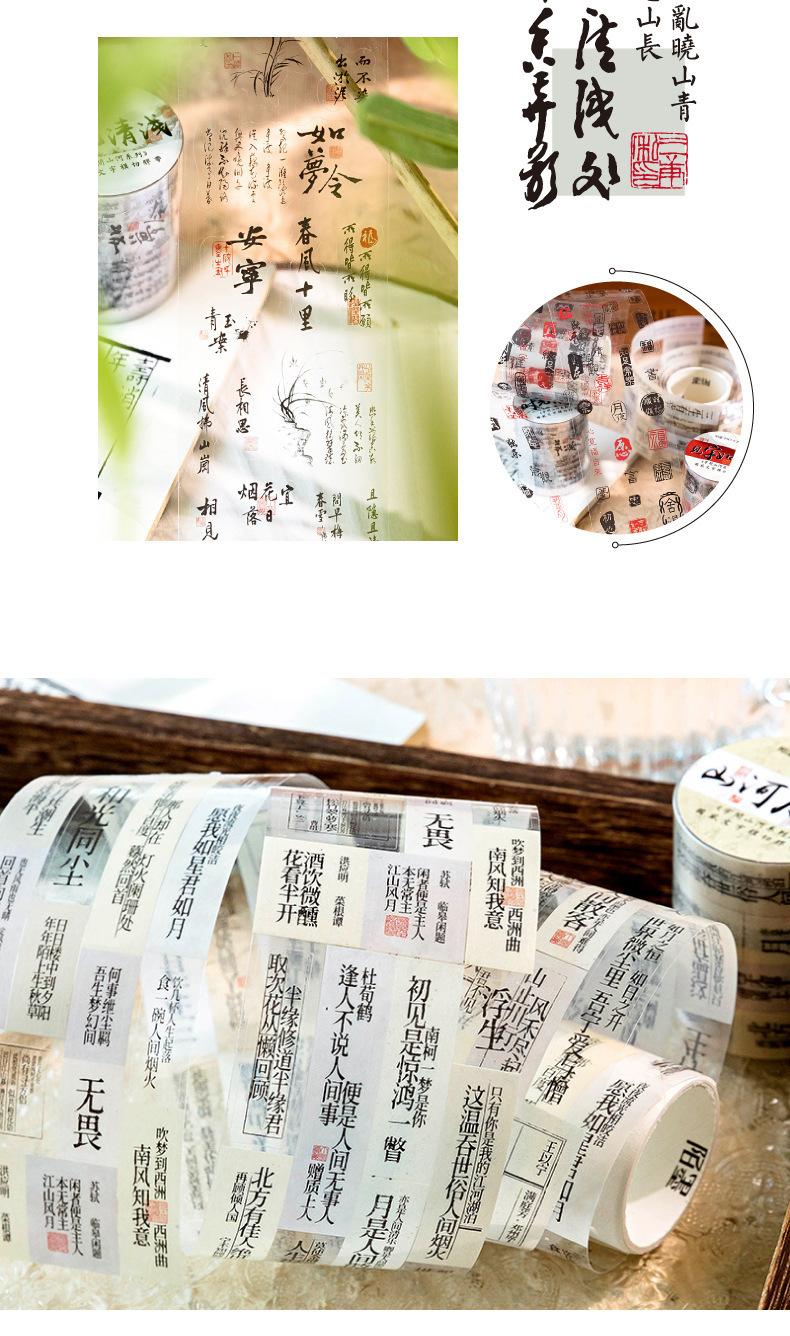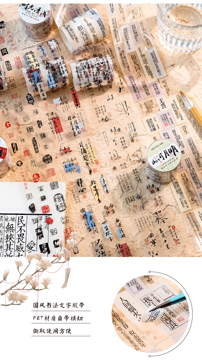 Momozijian Shanhe 시리즈 PET 다이 컷 테이프 중국 스타일 텍스트 소재 핸드북 팬 diy 장식 콜라주