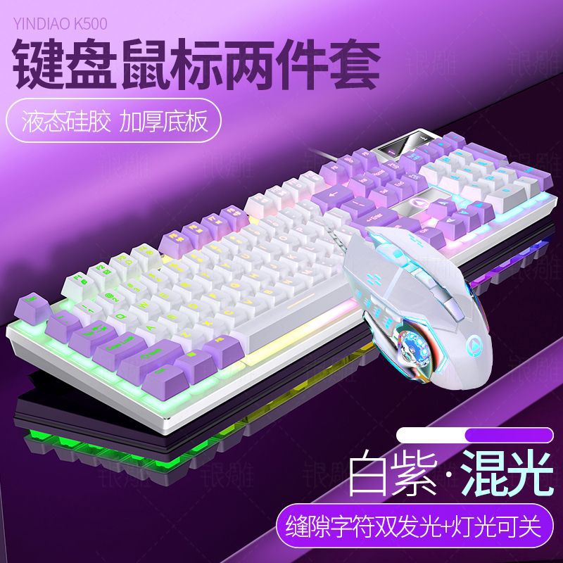 • [키보드 + 마우스 + 헤드폰] 흰색과 보라색 이중 조합 혼합 조명