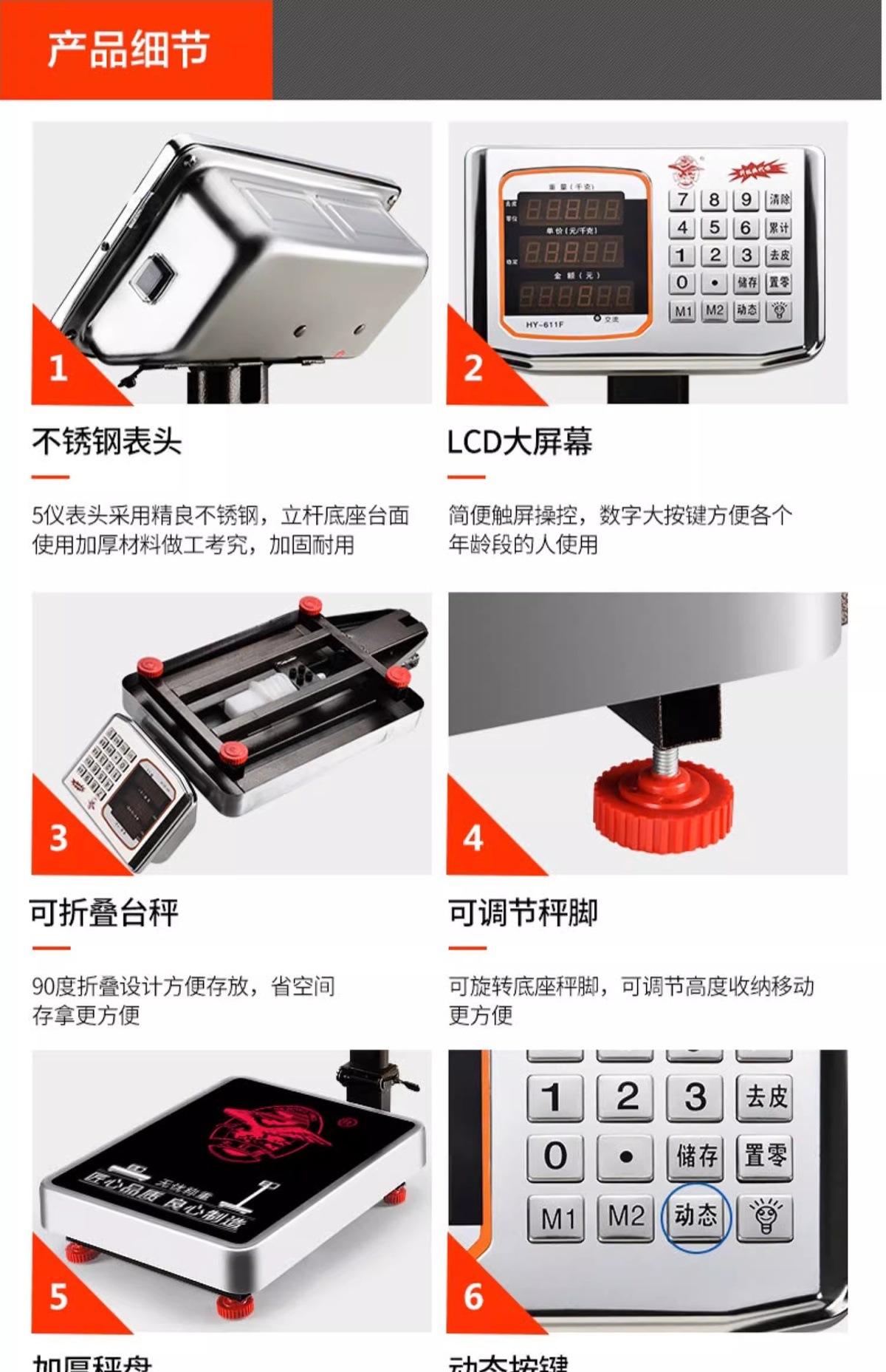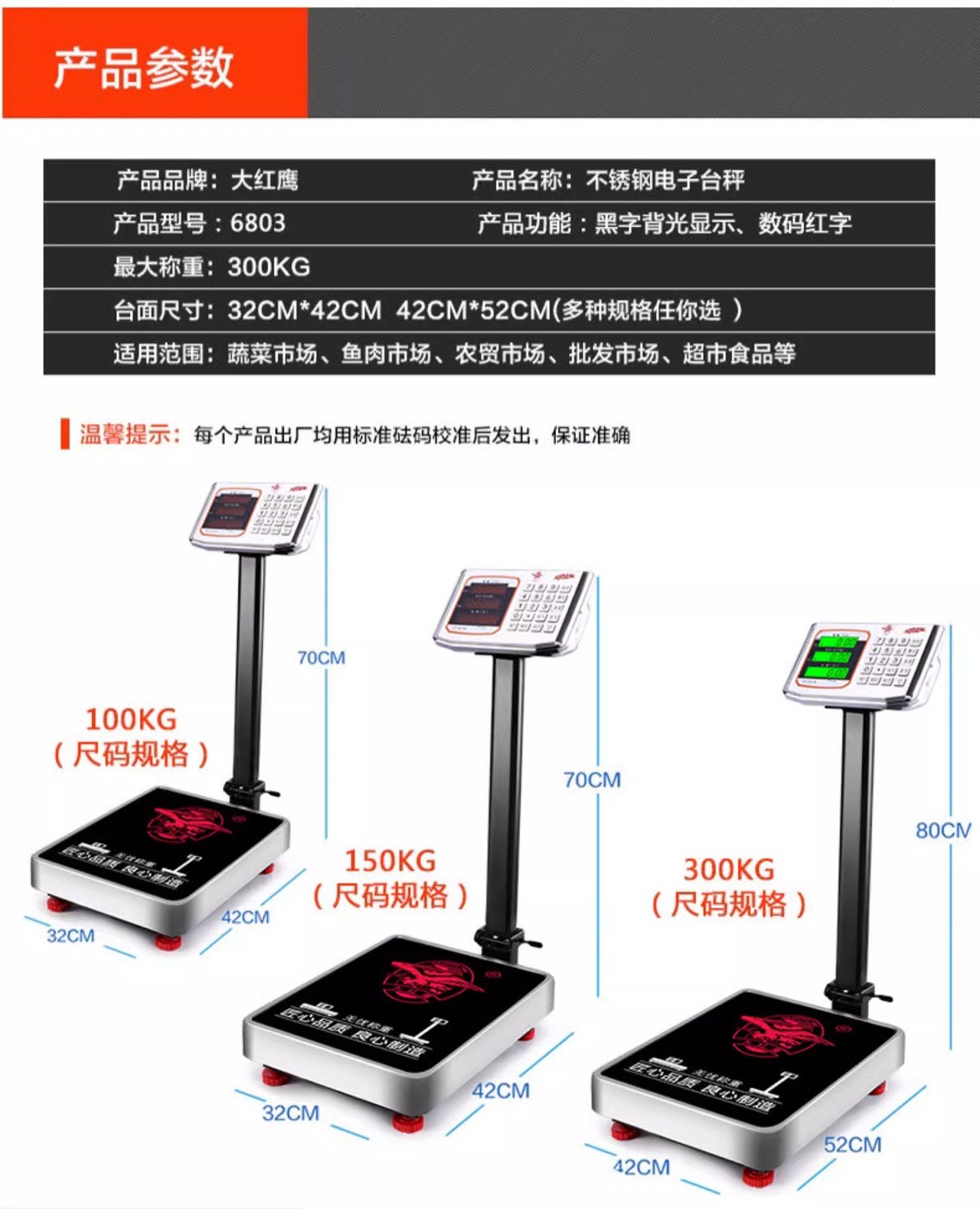 Huaying Weighing 대형 Red Eagle 상업용 전자 저울 150kg 정확한 전자 소형 저울 1000KG 계량 방수 저울스토어 가기